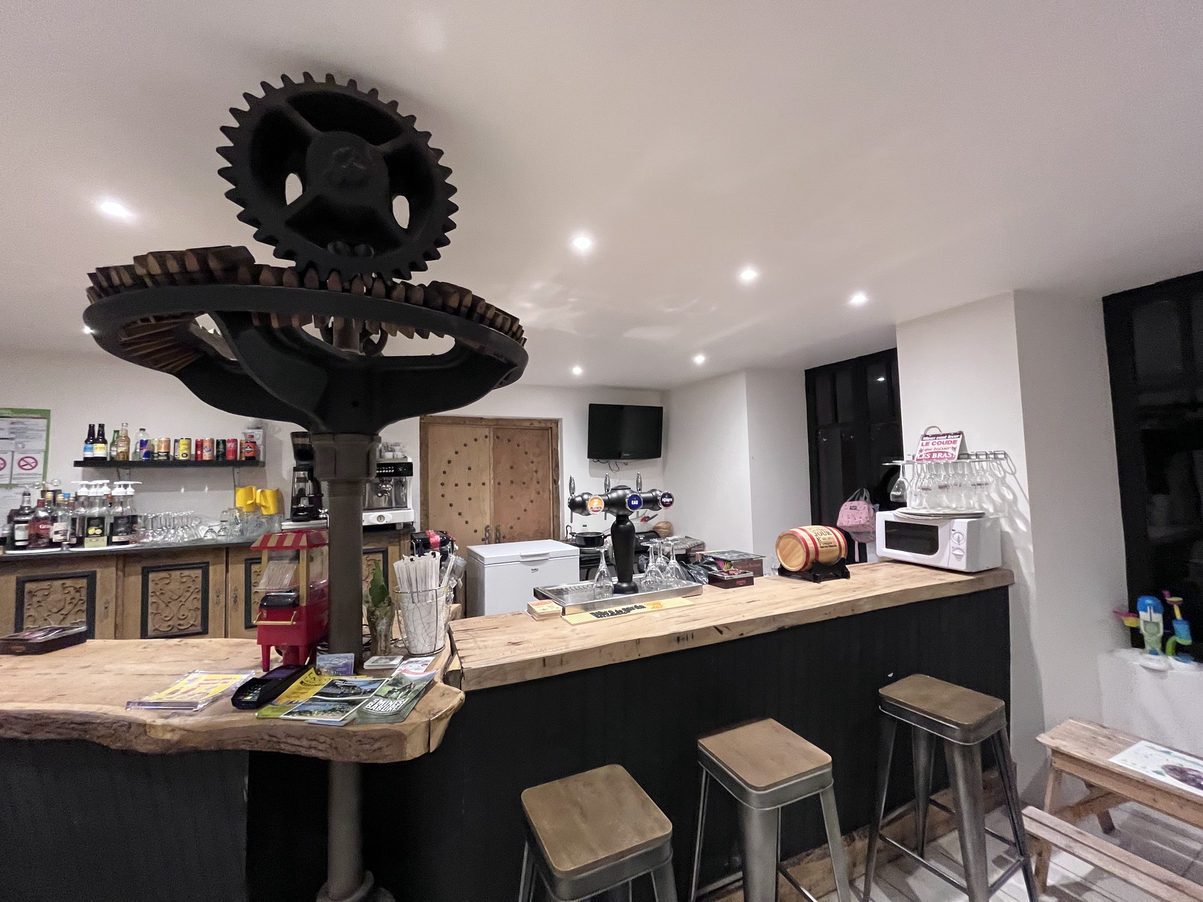 Étape parfaite pour un café, un verre ou plus sur le trajet entre Spandelles/Solour et Asson. Clignez des yeux et vous le manquerez, il est niché le long de la route et de la rivière. Service amical, très heureux de remplir les bouteilles d'eau des cyclistes avec de l'eau glacée, une bouée de sauvetage par une chaude journée.