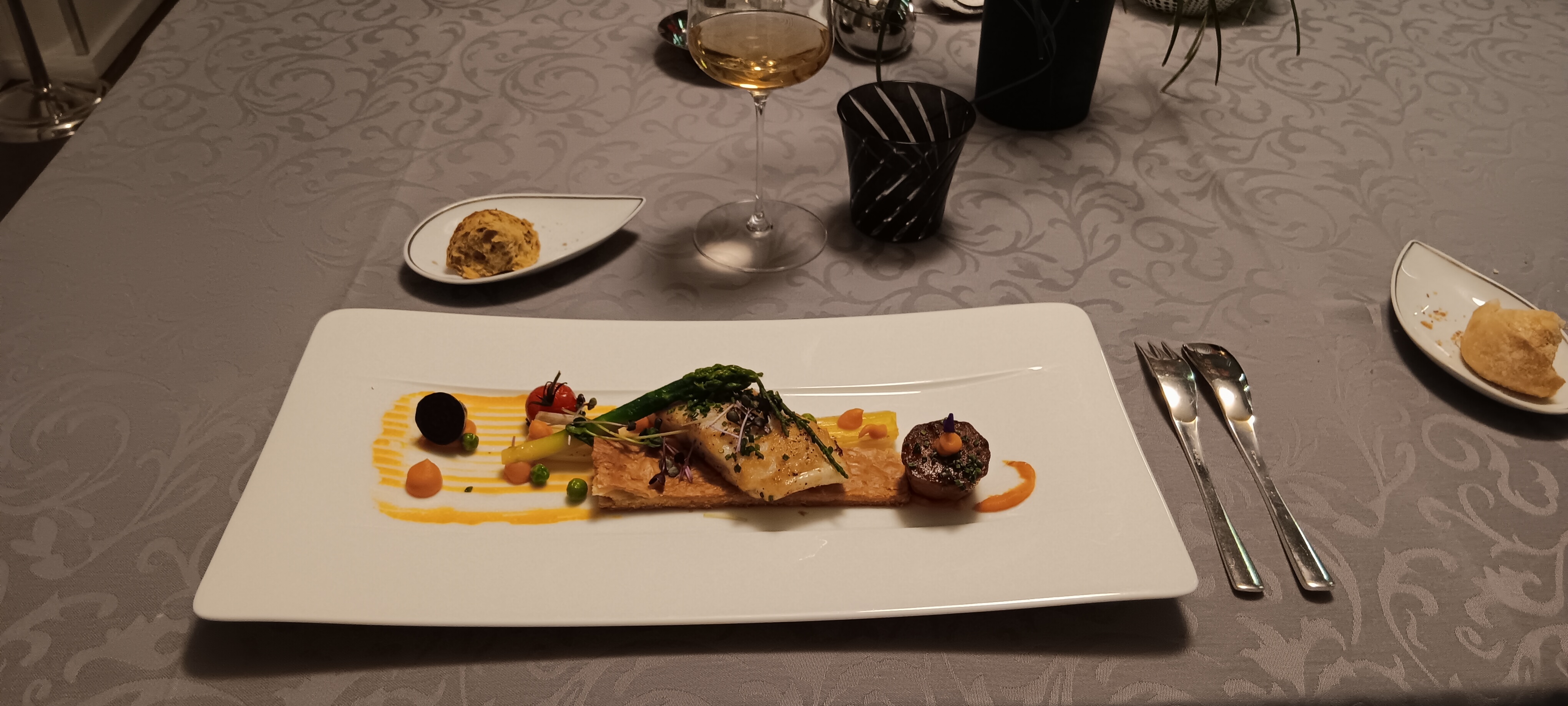 Très belle table .jolie mélange de saveurs. Pas très important mais manque de pain tradition!..