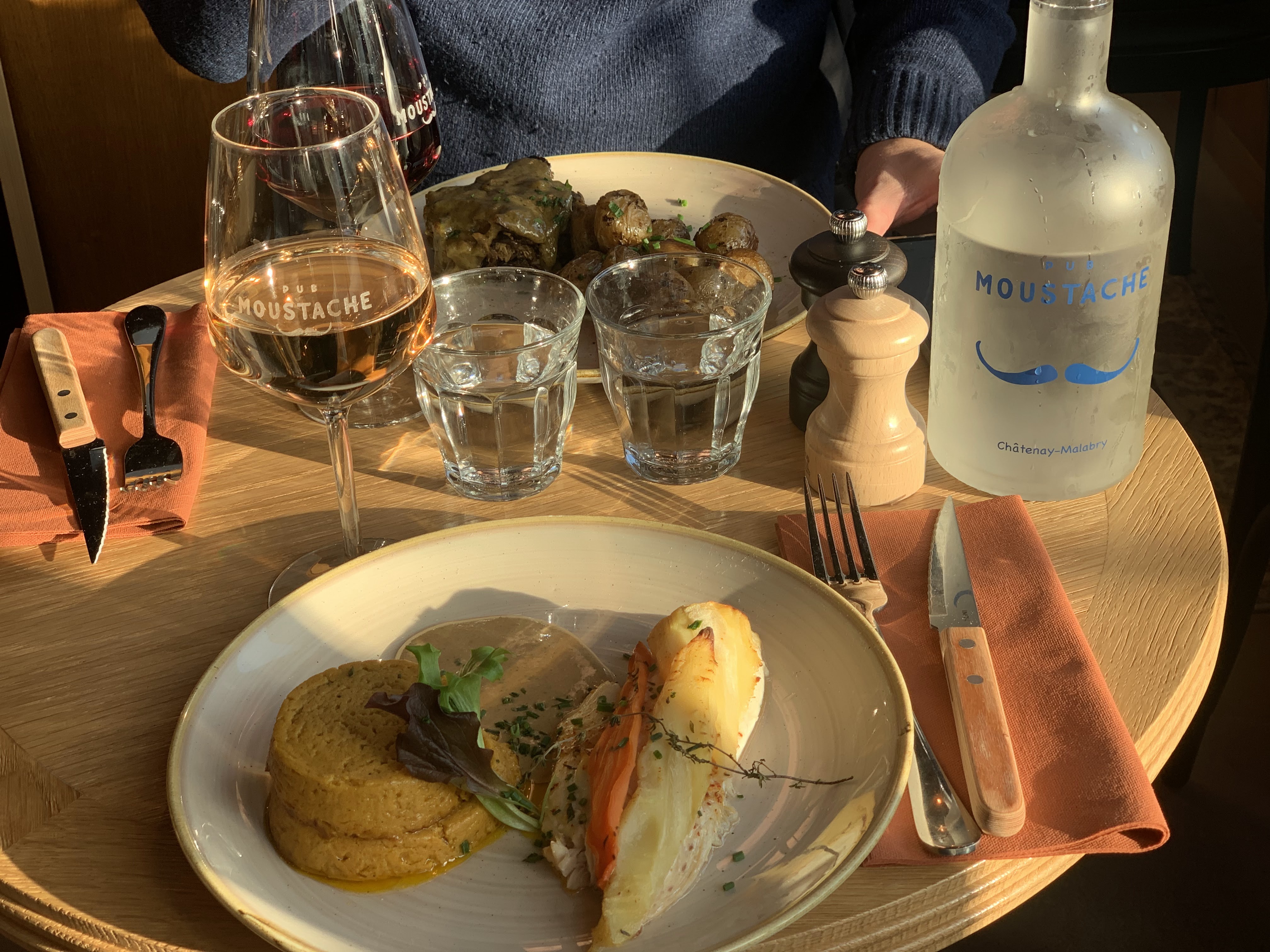 Mon anniversaire chez Moustache, nouveau restaurant à Chatenay, une belle découverte. Un cadre magnifique, on se sent presque à la maison très cosy… étonné que malgré la taille on puisse discuter et tous s’entendre sur une grande table. Cocktails excellents et pas excessifs, whisky ginger au top… planche apéritive et saucisson excelent de la qualité. Les plats très simples, mais très très bons et surtout fait maison. Burger au top, peut être prévoir un peu plus de fromages… frites plutôt nordistes, mon goût même si bonnes, je préfère mode du sud plus croustillantes… mais malgré tout très bonnes, mon épouse des coquillettes à la truffes justes excellentes, et mes amis tous très contents de leur plats… idem pour les desserts, maison et excellents, les vins très bon à et pas excessifs. Le service en rodage mais bien géré, ouverture depuis 3 jours, très réactifs et serviables. Vraiment une belle découverte…. A prévoir les JO sur place grands écrans et a priori future terrasses pour l été … à suivre donc