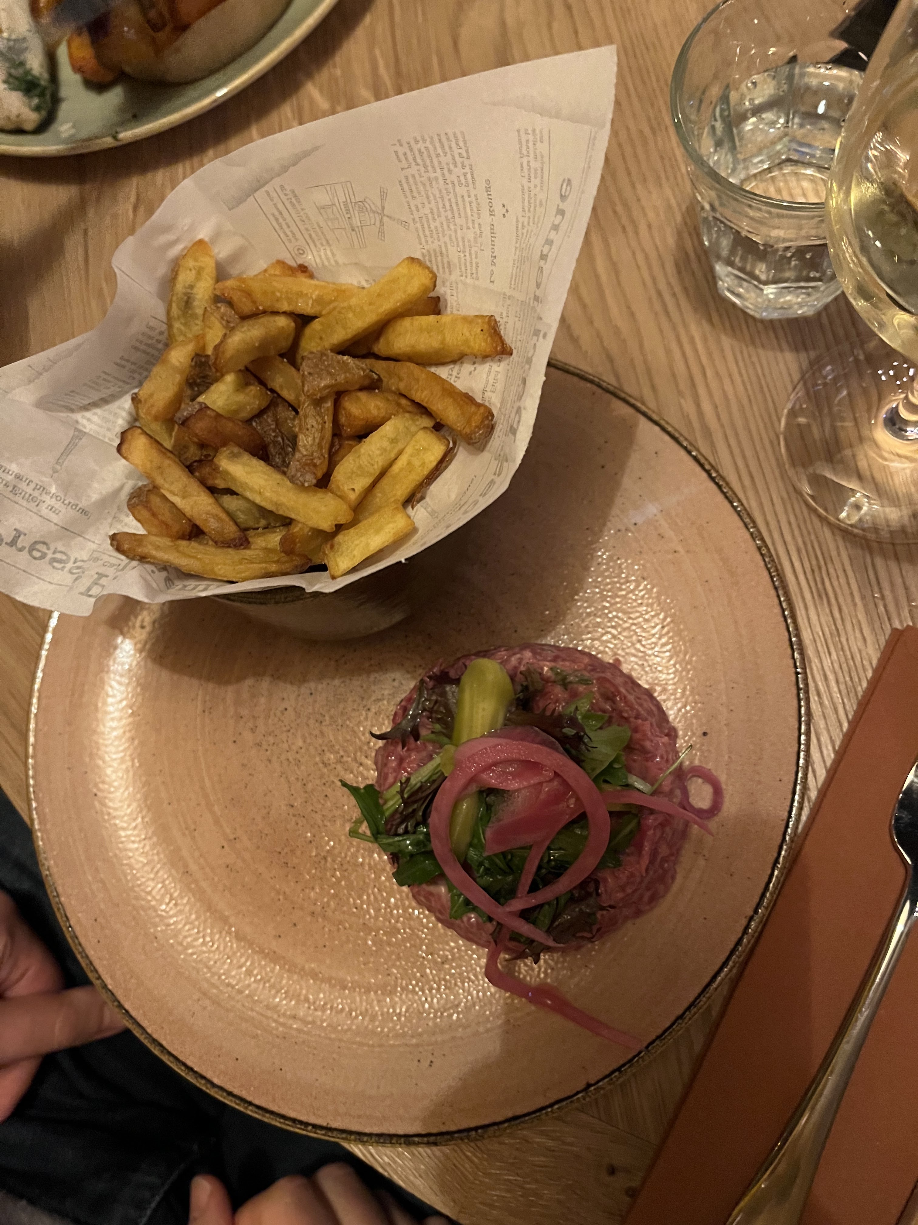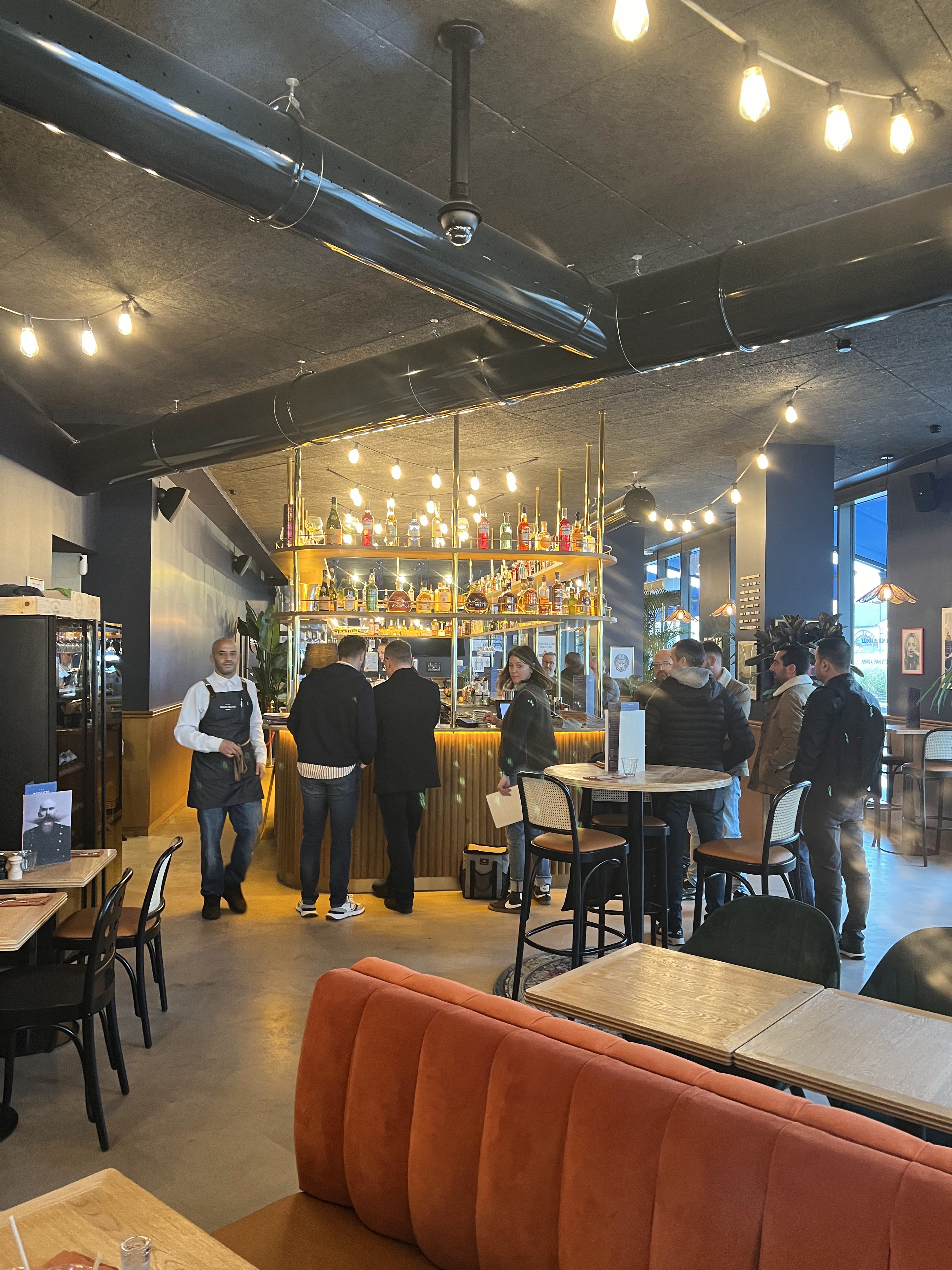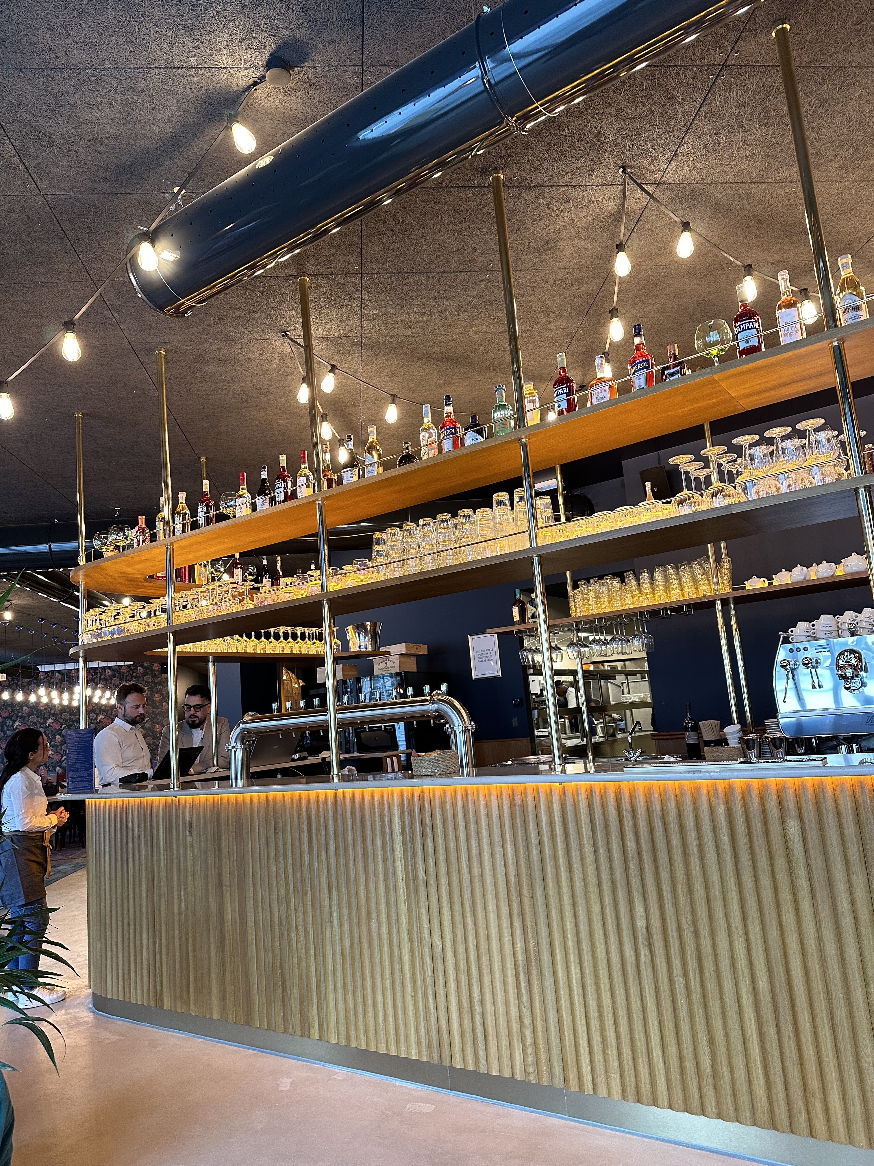 Ambiance très agréable ! Un cadre magnifique (chill & cozy). Un repas de qualité, avec musique en fond, on valide ! Prix onéreux quand même… (et prenez pas le profiterole, par contre le porchetta SLAY)