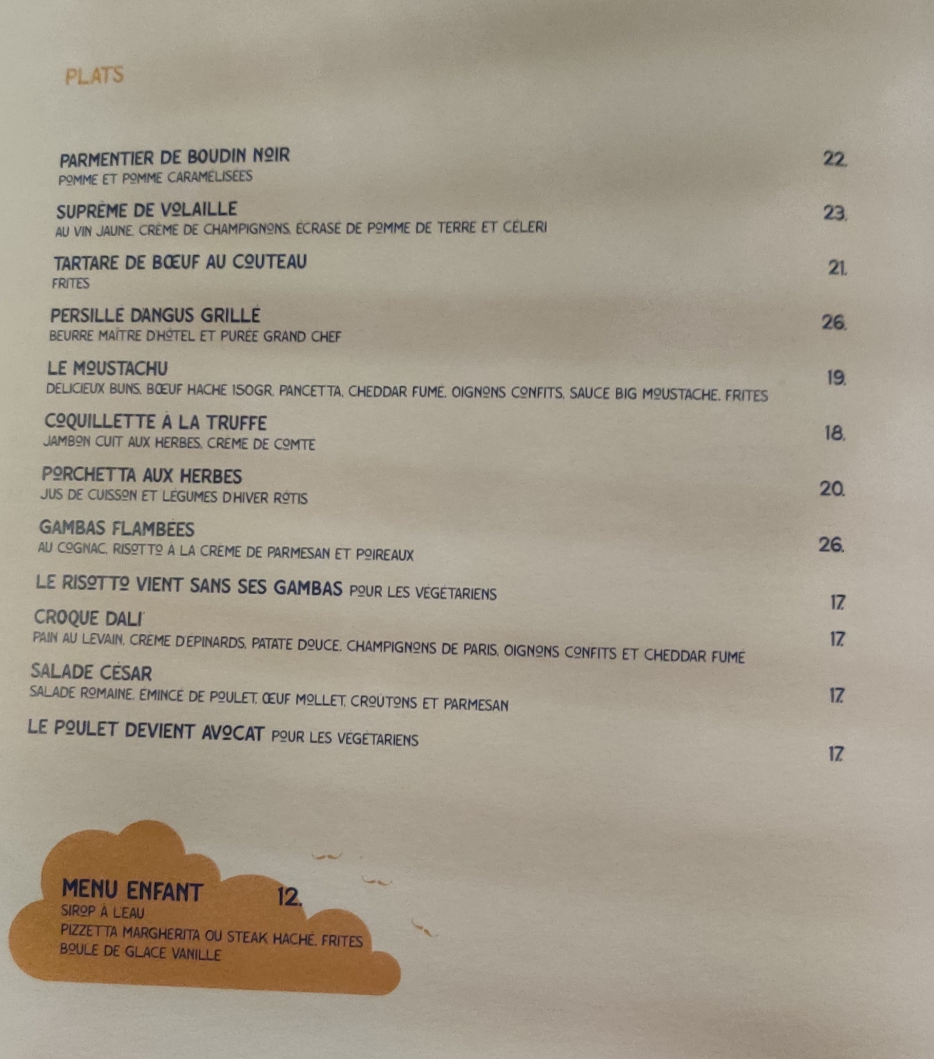 J'adore l'univers Moustache très chaleureux. Personnels et service au top. Très bon plats. Hâte d'y retourner 😉