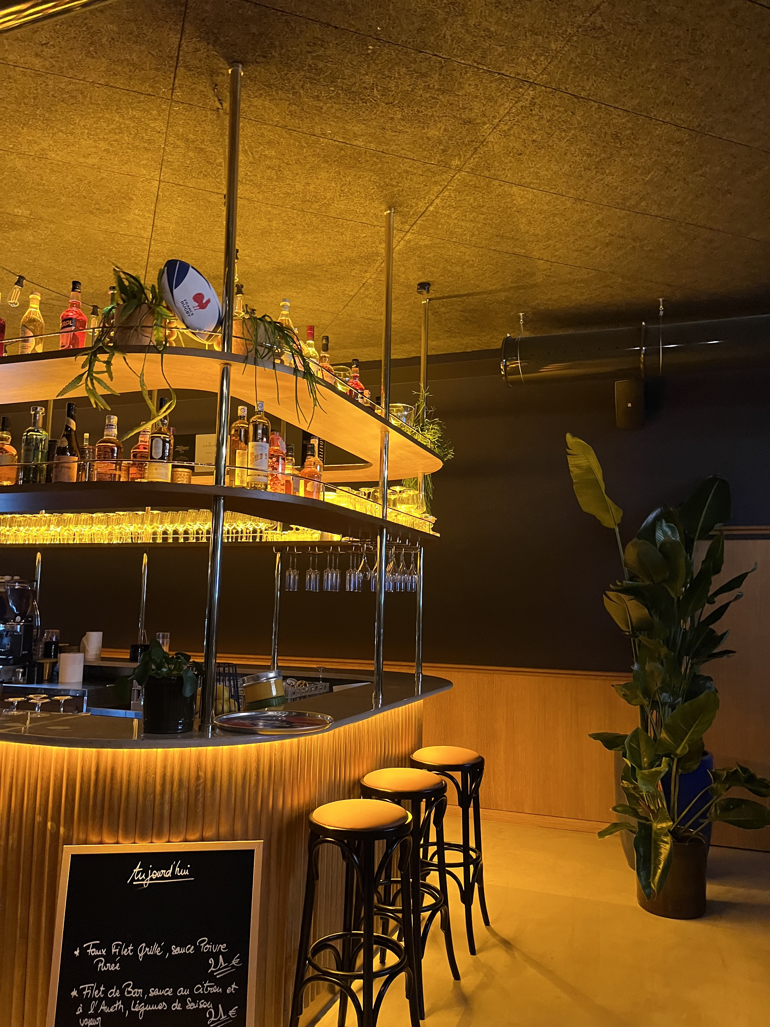Très bons cocktails très bon service l’endroit est très beau mais bémol sur la cuisine c’est très cher, il n’y a pas de menu seulement des plats à la carte, peu d’offres pour les végétariens et les quantités sont très variables, mon conjoint a pris le plat du jour et a dû remanger en rentrant à la maison pour 21€ le plat ça fait un peu mal. J’espère que des menus et une offre moins carnée seront présents à l’avenir. Nous reviendrons avec plaisir boire un verre cependant