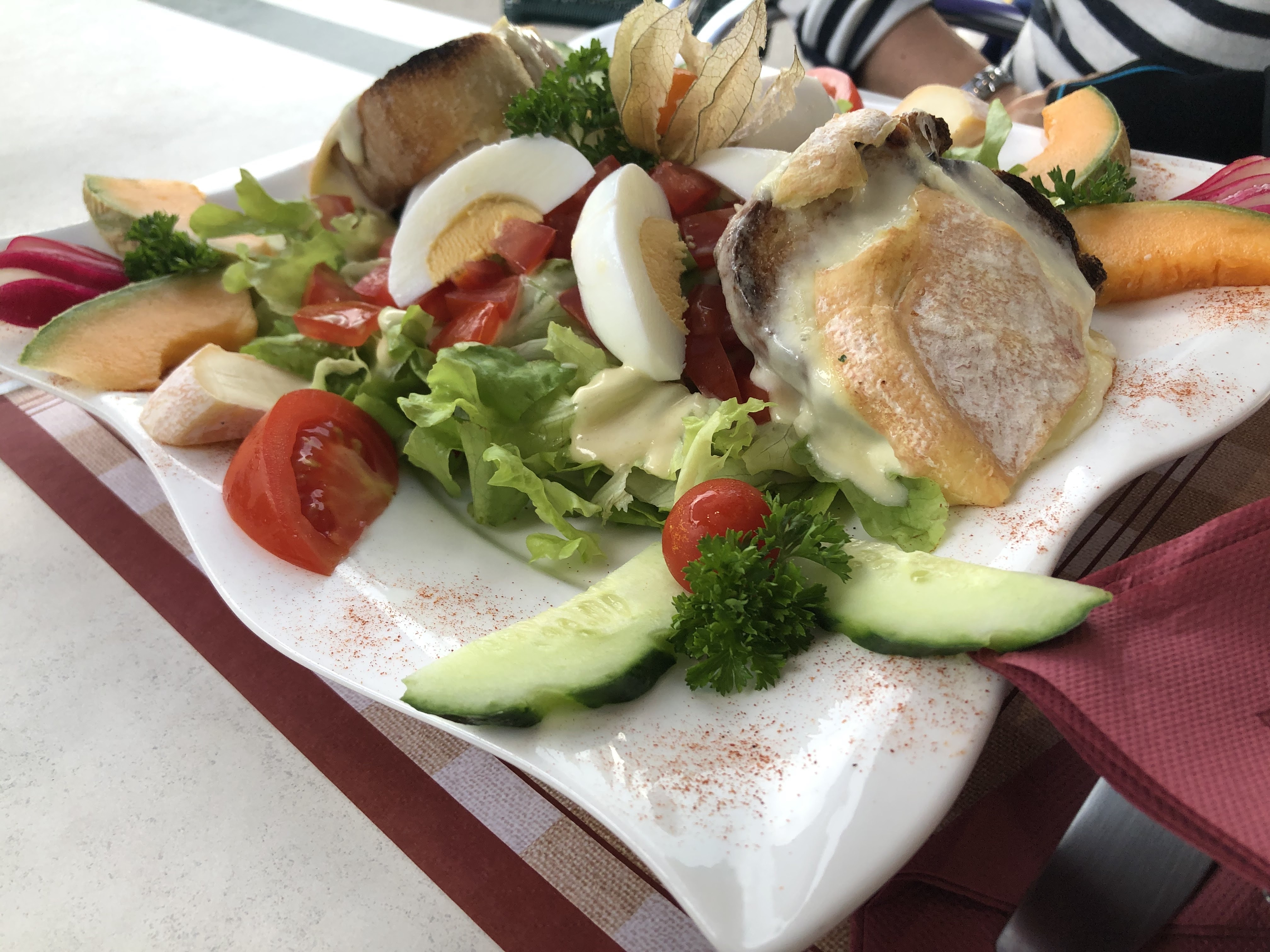 Déçu, demander une salade César.Servi une autre.Sur l’extérieur, noter crêperie. Aucune crêpe sur la carte.