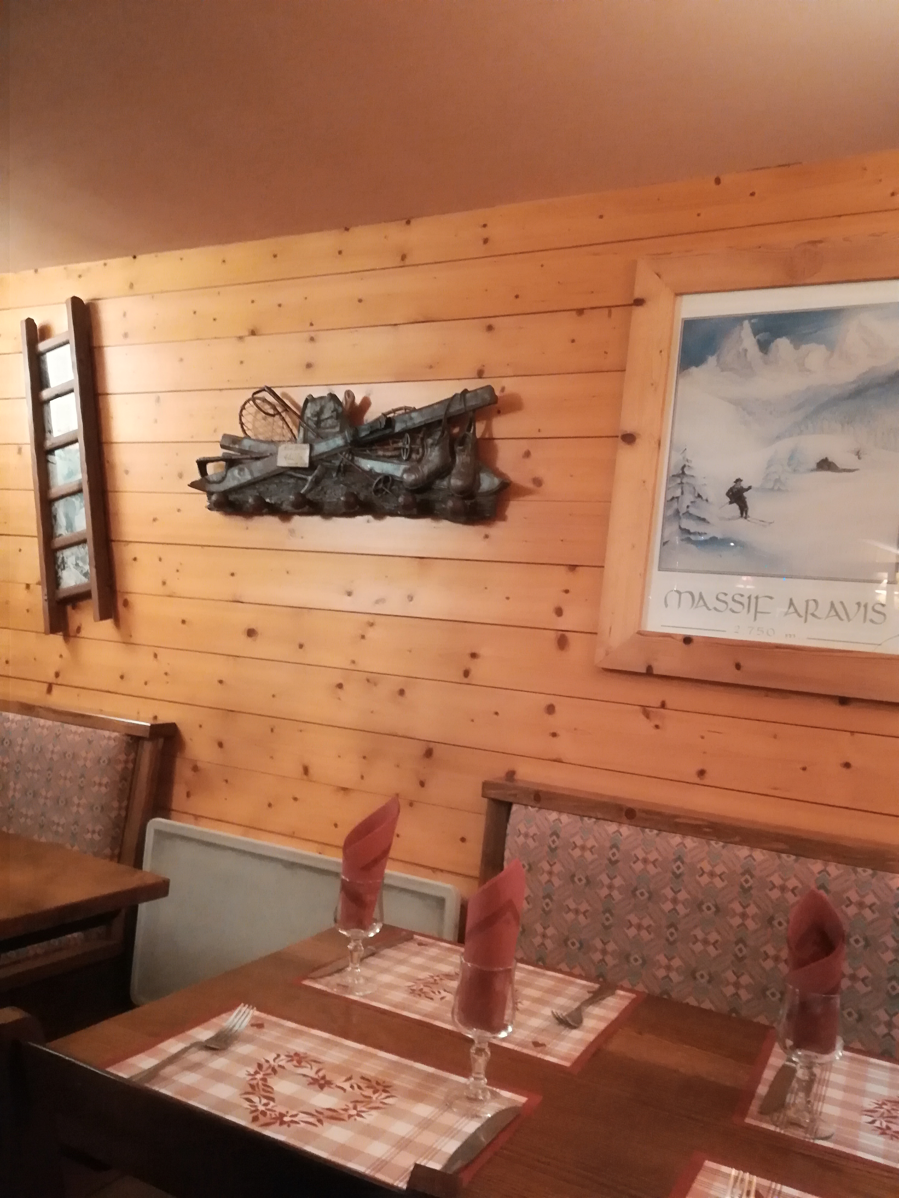 Un bon restaurant Savoyard dans le quel on se retrouve en famille en été comme en hiver avec une vue sur la montagne et une belle décoration et je vous conseille une bouteille de cidre qui vous sera servi dans des tasses.