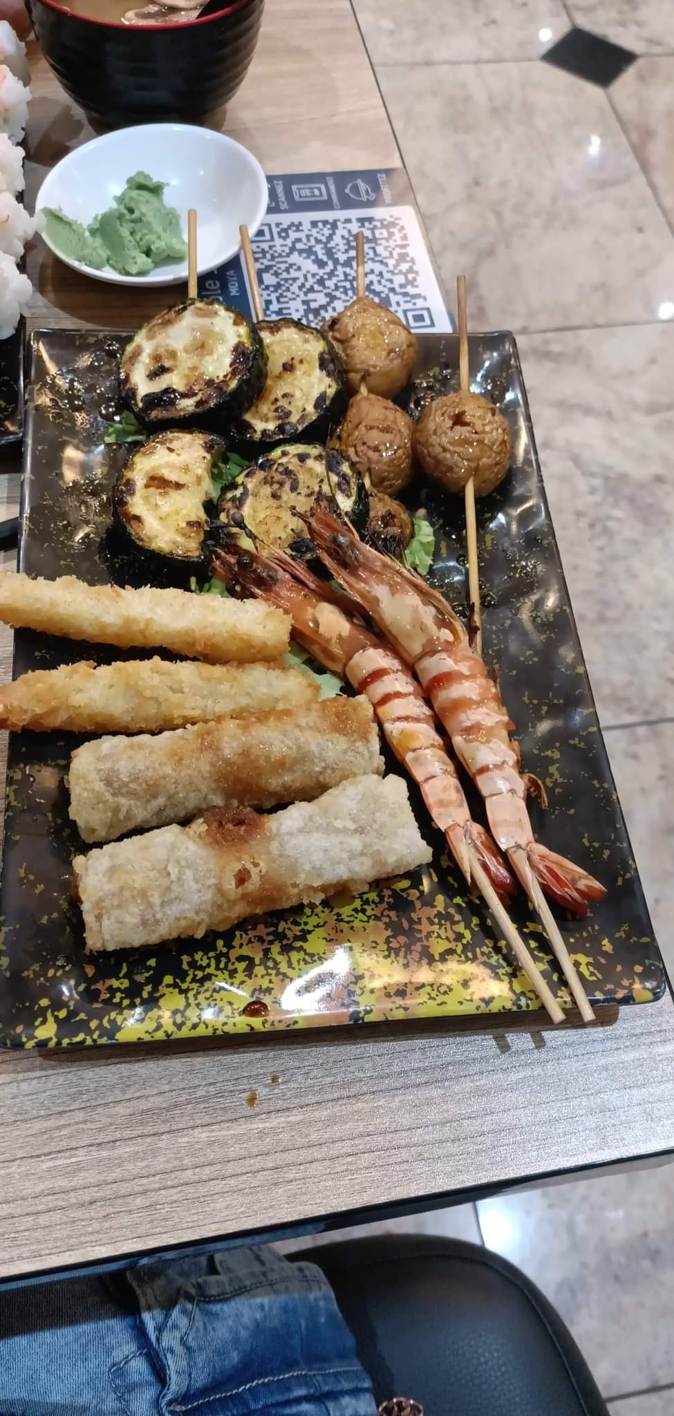 Le concept pourrait être pas mal mais les brochettes sushis étc n’ont pas toujours beaucoup de goût. Les brochettes arrivées froides ont été impossible à manger pour nous. Assez déçue par le manque de geste commercial le jour où nous sommes venus car aucun dessert hormis les glaces bien entendu car problème de livraison ce qui en soit est entendable.