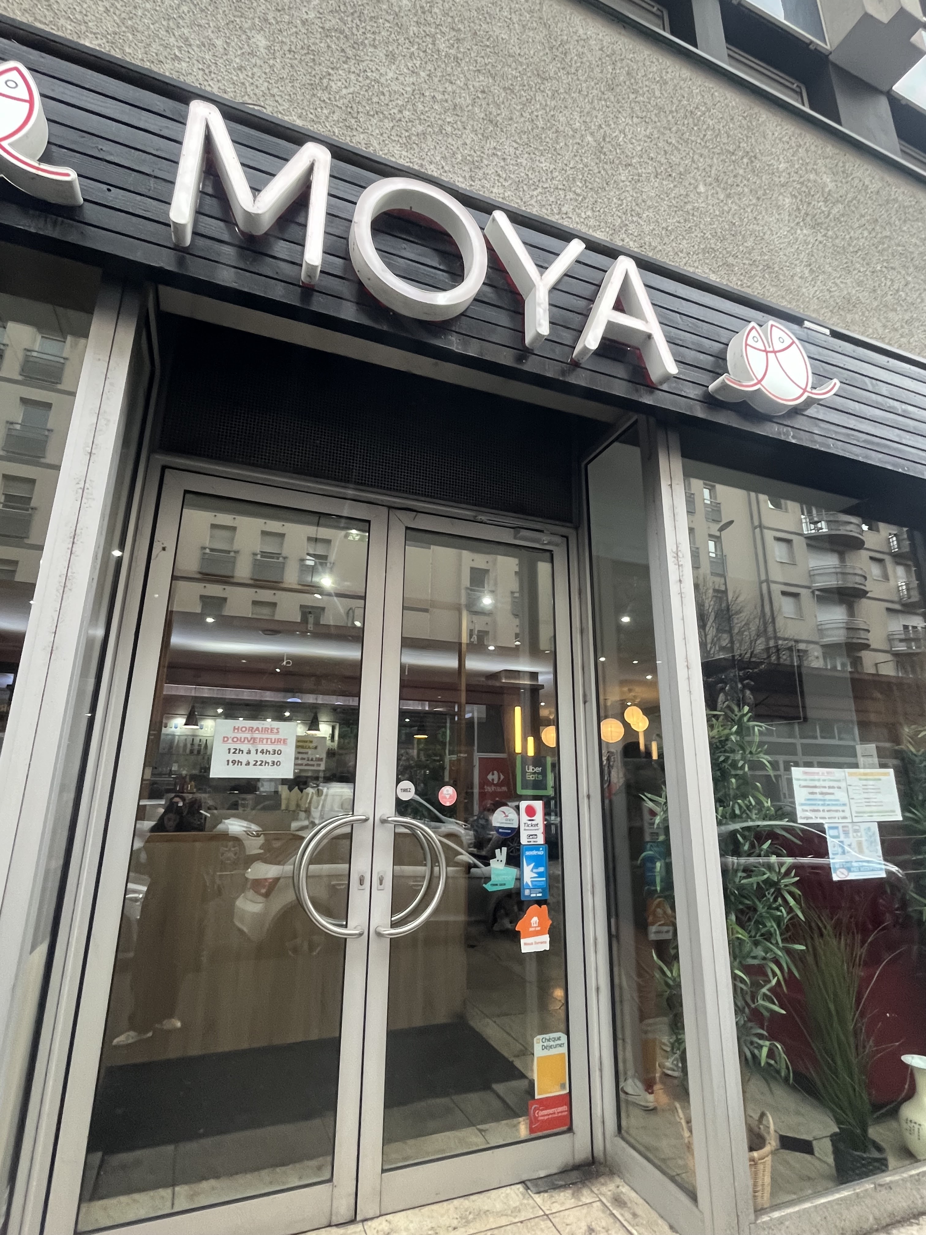A fuir Si vous voulez payer pour manger de l’huile et des mets fades et ou sois trop cuits ou pas assez c’est au Moya qu’il faut aller ! Vraiment pas bon !! De plus pas beaucoup de choix. Le concept du robot c’est que de l’animation ,en réalité vous serez servi par des serveurs beaucoup trop débordé de plus le service à table exclu les sauces et deserts à aller chercher sois meme au comptoir (3 vieilles bouteilles) Et le pire c’est qu’on a oser vouloir nous facturer ce qu’on a laisser sur la table (nous nous somme vraiment forcé mais impossible) meme les sushis étaient fatigués chaud et mauvais…vraiment pas bon voir degueu