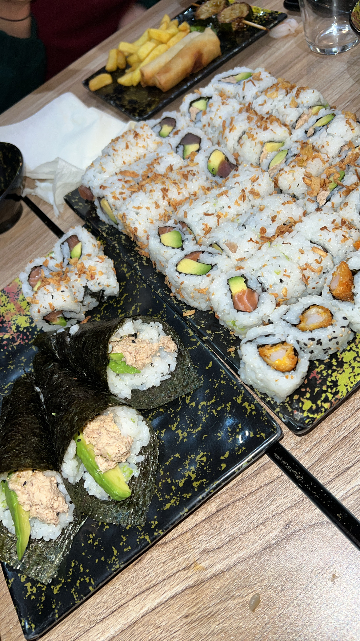 Très bon service personnel agréable, les sushis sont bons petit bémol pour les brochettes et nems qui n'ont pas été à mon goût. Dans l ensemble très bon rapport qualité prix