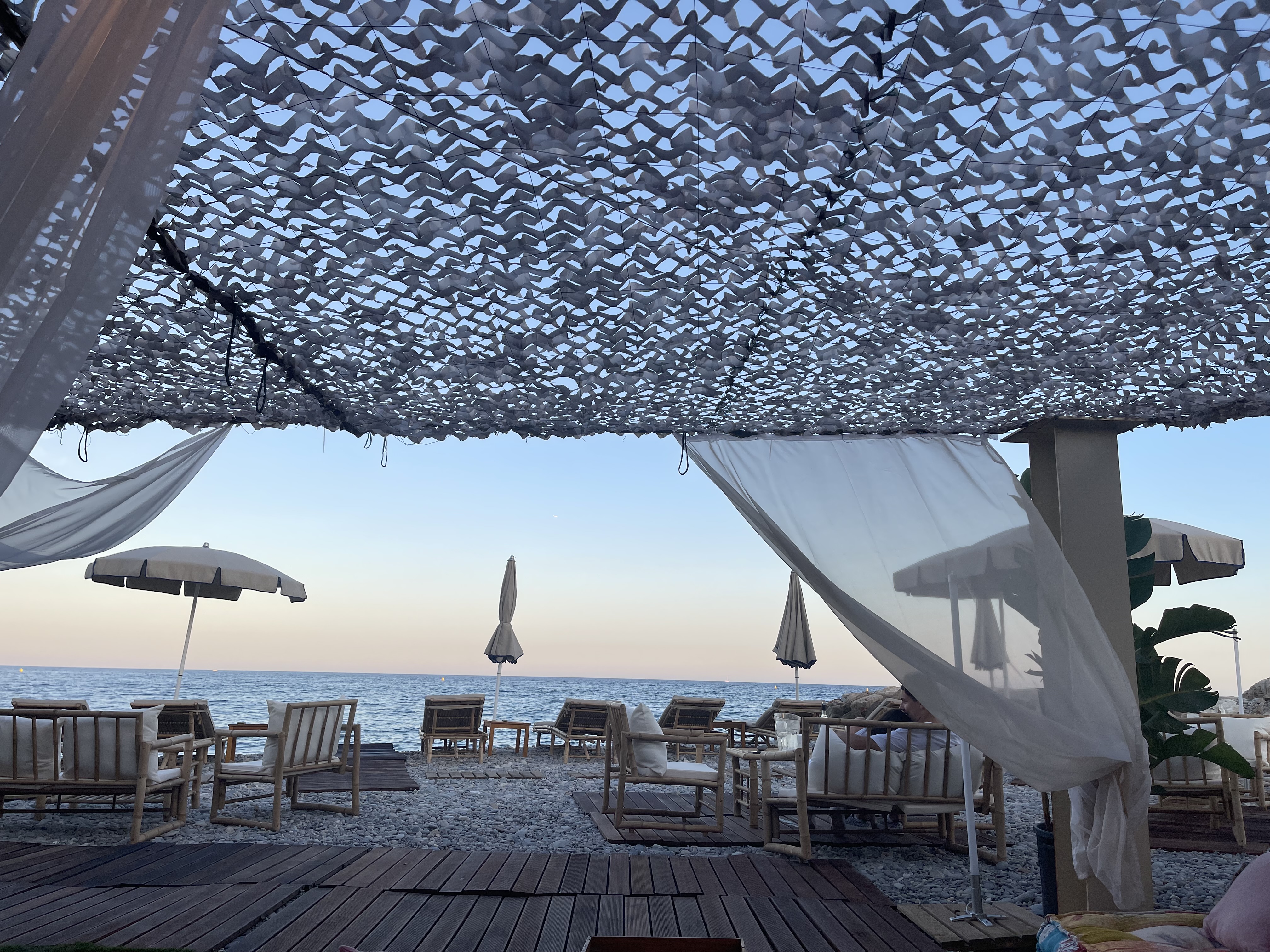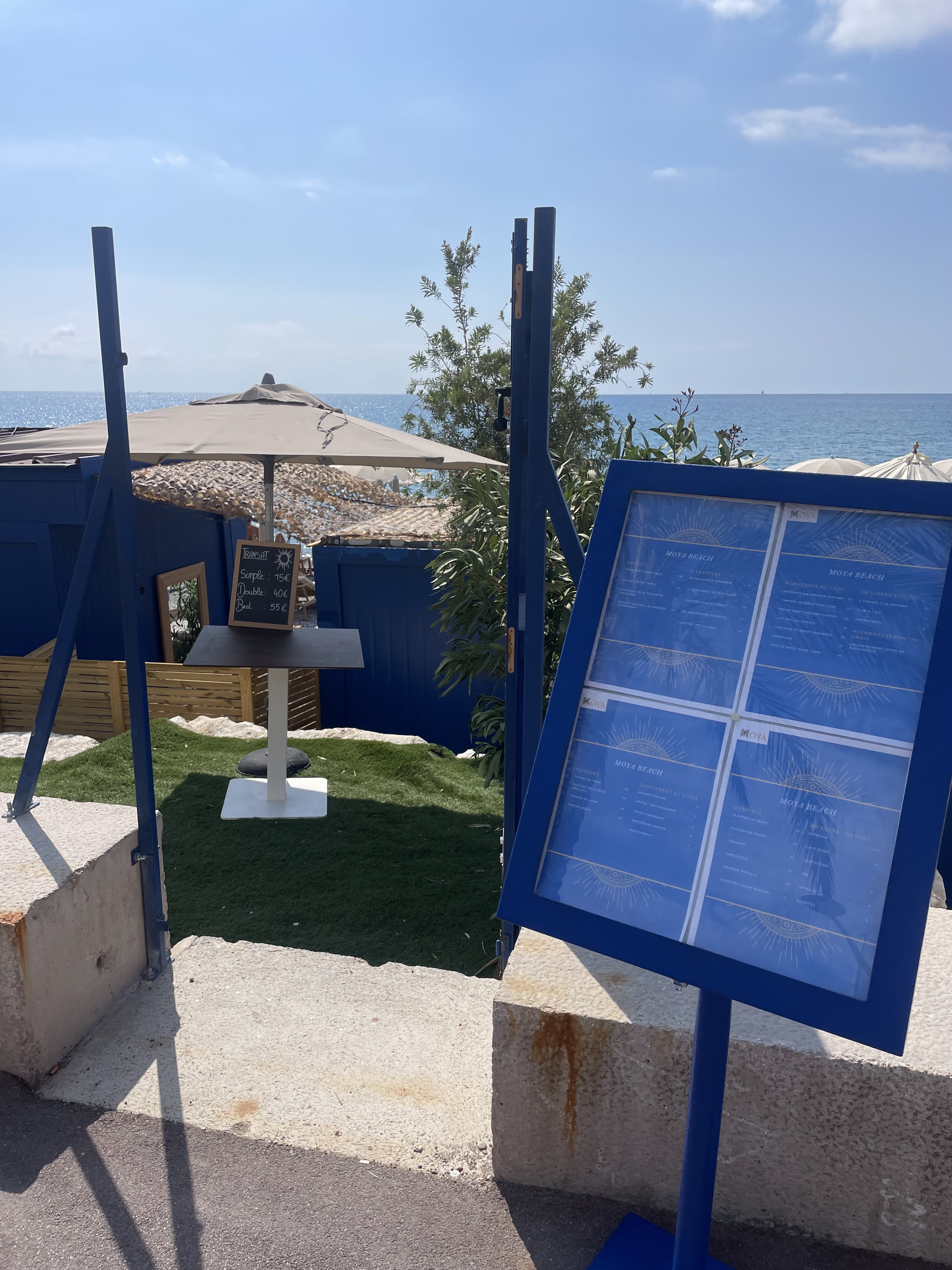 Je n’ai jamais été aussi bien reçue sur une plage privée, surtout sur la Côte d’Azur en plein mois d’août ! La cuisine est simple et délicieuse. L’accueil est chaleureux, souriant et il y règne une belle énergie, bravo à tous car il faisait extrêmement chaud en ce jour. Mon transat en bois a cédé dans l’après-midi et il a été remplacé immédiatement. De plus, une petite bouteille d’eau fraîche m’a été offerte pour ce désagrément. Je remercie le serveur pour mon cocktail ! Le prix est très accessible (15€ pour un transat), je vais revenir très souvent. J’ai passé une belle journée, toute l’équipe est présente et discrète à la fois, c’est très appréciable