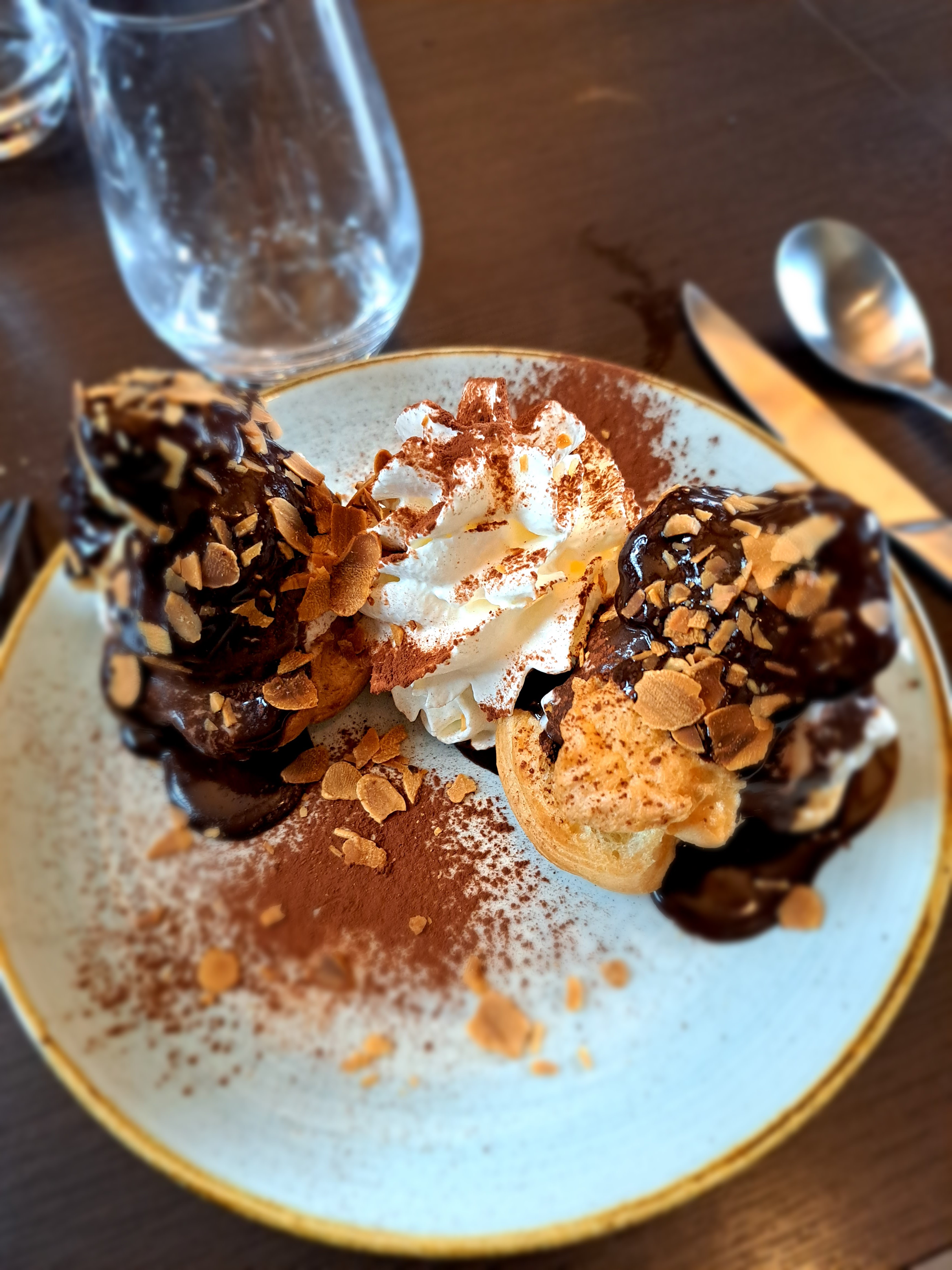 Le restaurant possède un parking. Bon point L'accueil est agréable et professionnel. Si je n'ai rien à dire sur la présentation des plats qui sont très beau, je suis néanmoins plus dur sur la qualité des plats : - tartare de boeuf préparé mais extrêmement salé - Profiteroles au chocolat dont les choux sont soit industriels soit faits 2 jours avant. Rien de craquant et fade. Dommage car l'endroit est plein le midi. La pizza est certainement une valeur plus sure.