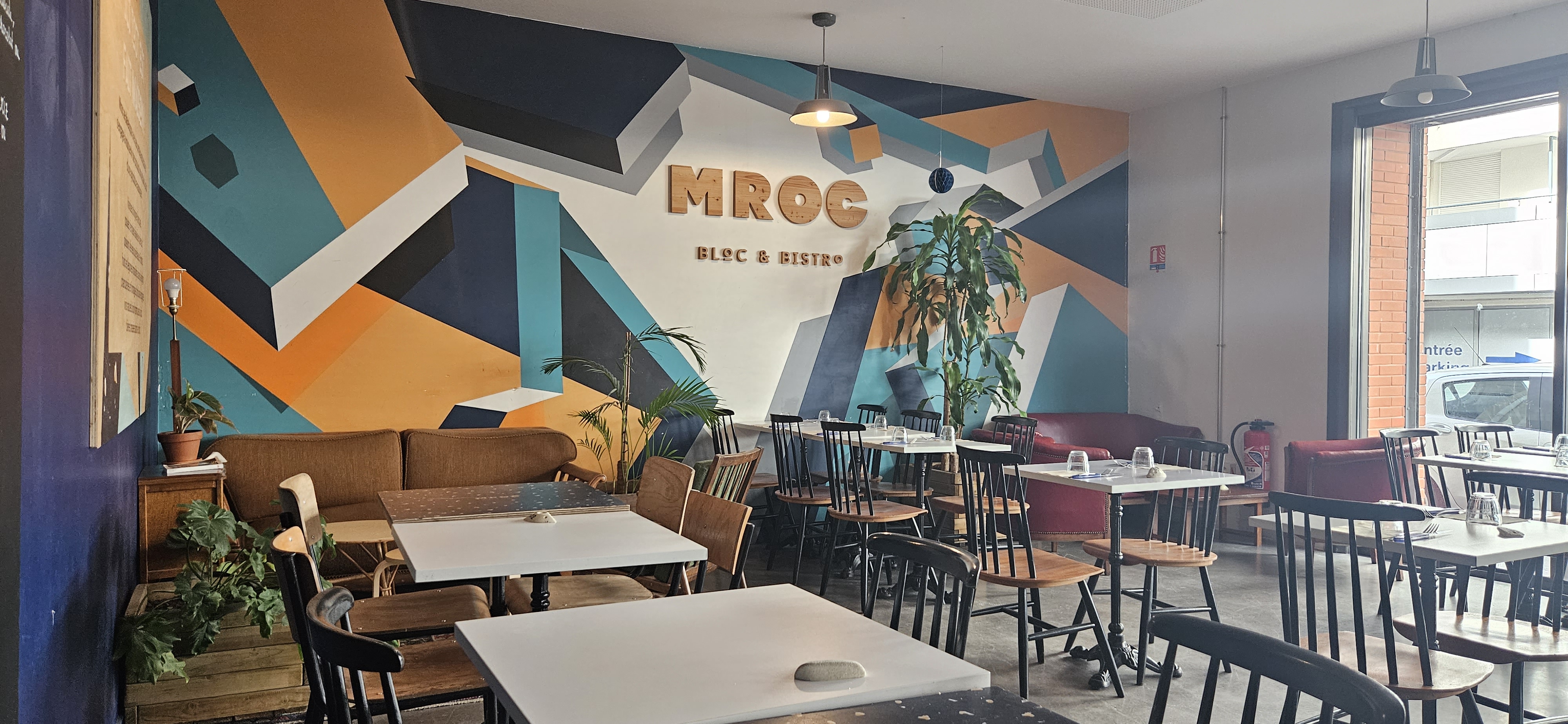Très belle découverte sur Lyon, personnel a l accueil vraiment disponible et arrangeant, salle de bloc intéressante pour tout niveaux. Vous êtes seuls mais vous voulez vous entraîner ? Mroc c'est the place to be, la communauté des habituées est très sympa vous allez faire pas mal des connaissances. Si vous venez à plusieurs n hésitez pas à dîner au bistrot, la qualité sera présente. Je recommande fortement.