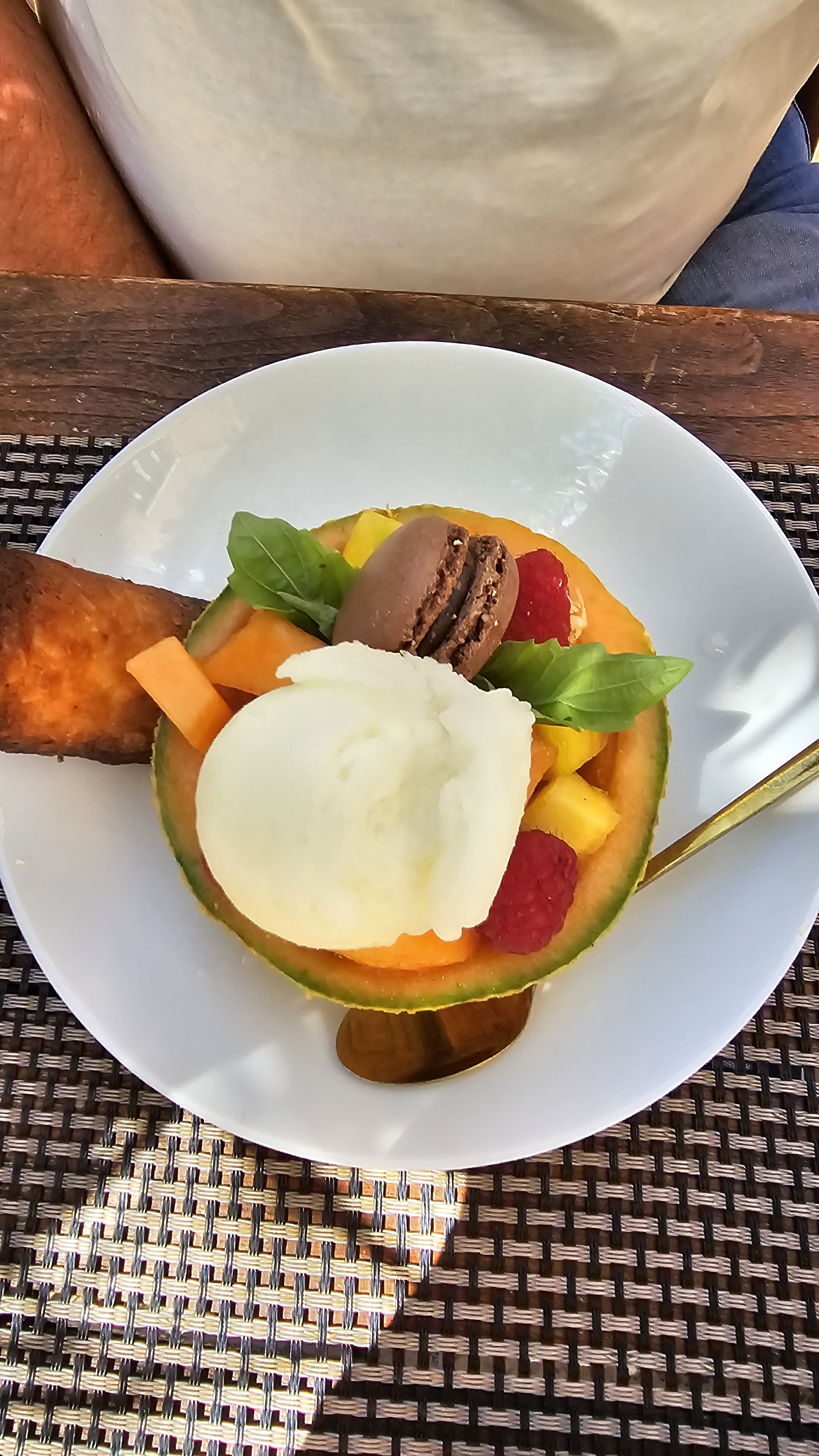 Nous avons quitté l’autoroute en venant de Lyon pour manger mieux que dans ces restos d’autoroute… Une petite promenade dans le centre-ville et nous tombons par hasard sur cet établissement avec des parasols. Nous avons consultés les avis sur internet. Ils étaient très positifs. Il restait une table. Nous avons commandé, une jeune fille très sympa nous a prit la commande. Lorsque les plats sont arrivés nous avons été très agréablement surpris par la présentation. Tendance japonaise mais également européenne… Chaque bouchée était succulente ! Nous avons prit un dessert (alors que ce n’était pas forcément prévu) et là encore ce melon avec mélange d’autres fruits, chocolat blanc et sorbet citron a fini de nous convaincre. Nous reviendrons lors de nos prochains passages…. Merci au très agréable personnel et au chef qui en partant nous a expliqué qu’il ne travaillait que de bon produits et qu’il cherchait à les sublimer pour le plus grand plaisir de ses clients