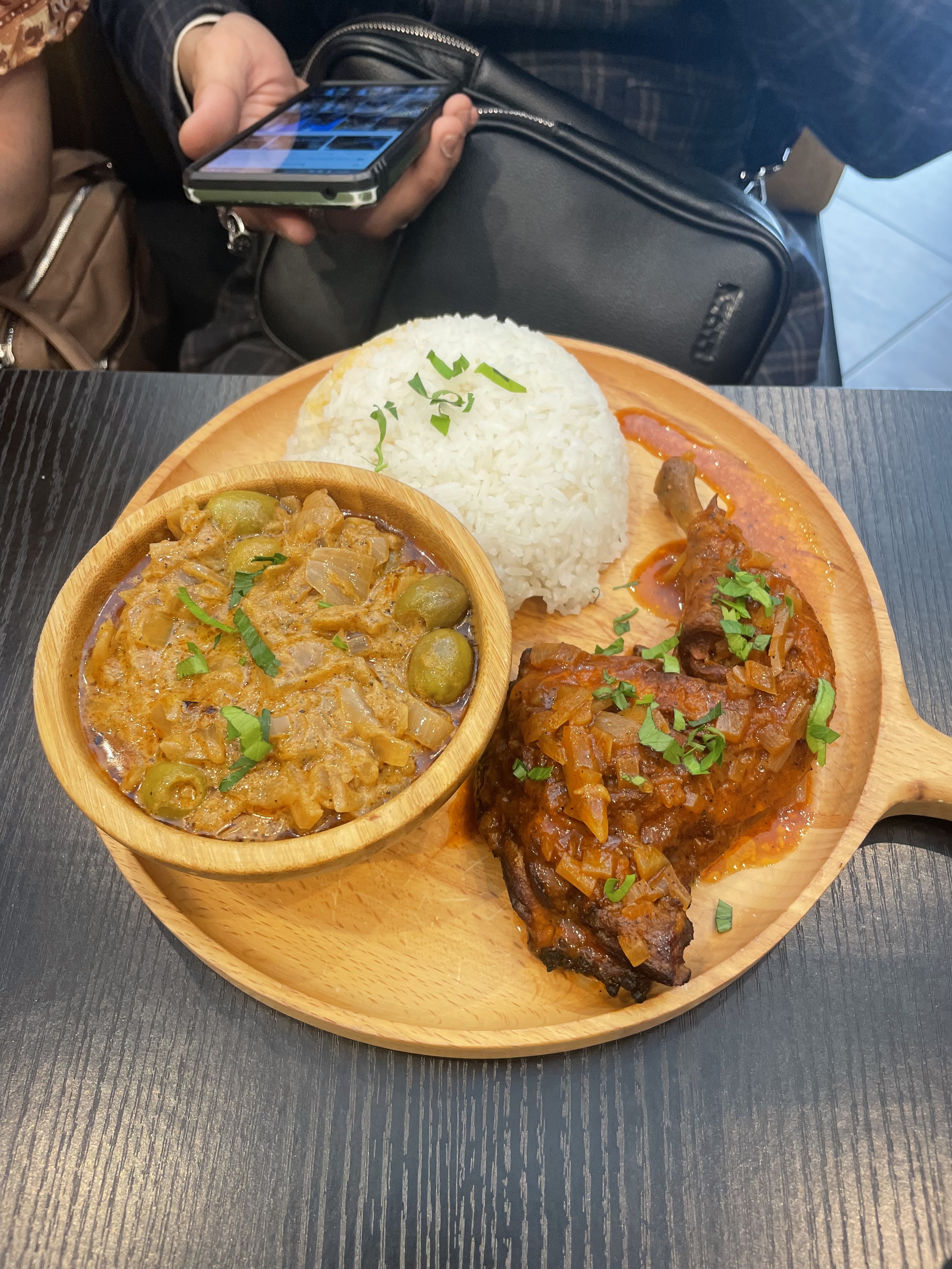 Repas au top et serveuse adorable. La tablée a notamment pris un poulet yassa, un mafé poulet et les brochettes poulet avec alloco : tout était très bon !