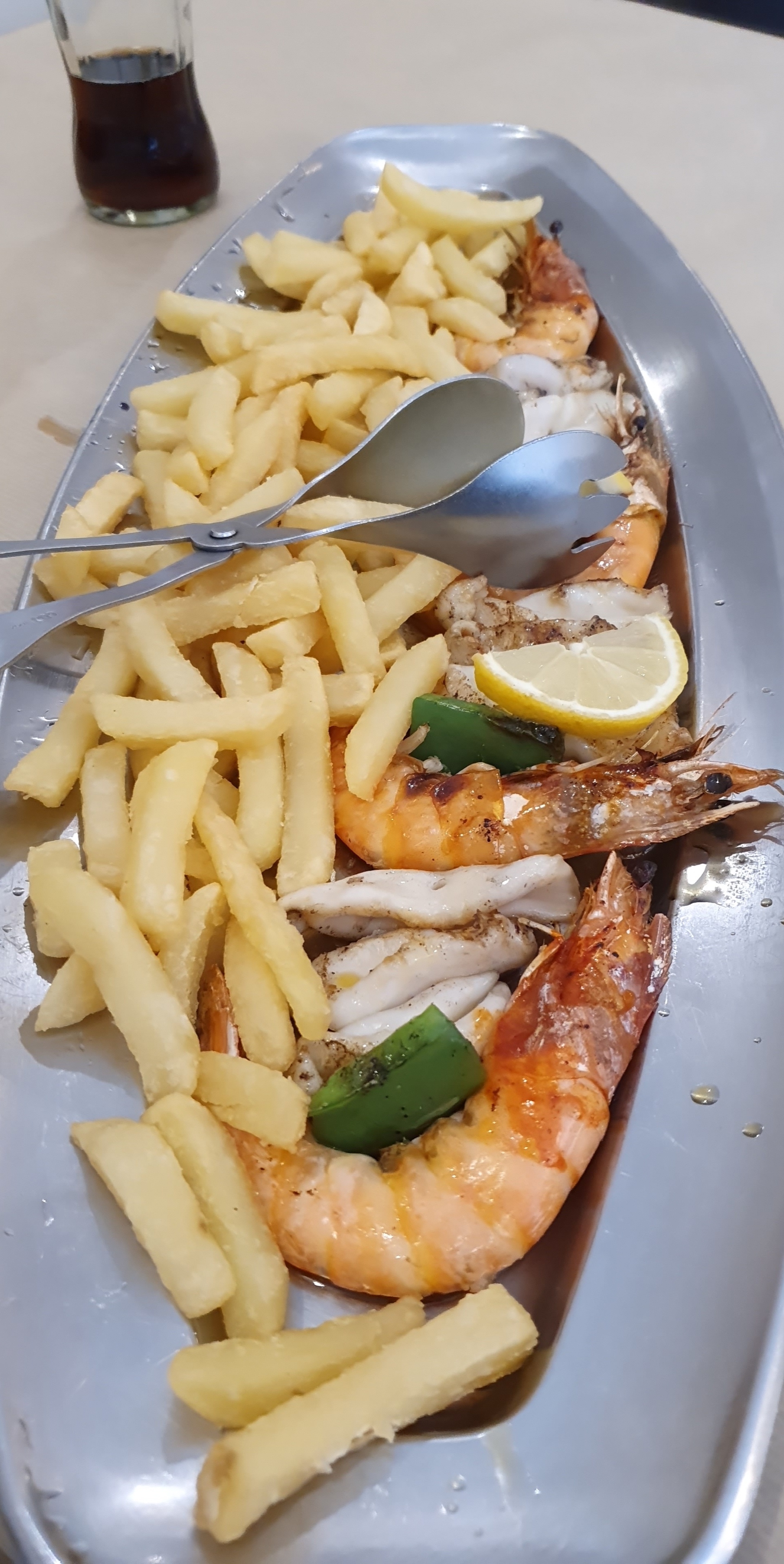 serveur/ serveuse pas souriante , choriço apero infame on a deja hesitez a s’enfuir a ce moment-là . Les plats arrivent , viandes froides, fruits de mers pas bon , toutes les moules fermées ,les crevettes trop cuites impossible à décortiquer , on leur dit que la viande est froide il revienne avec la meme viande 10 minutes plus tard , réchauffées, noirçit!! Infâme ! A fuir !