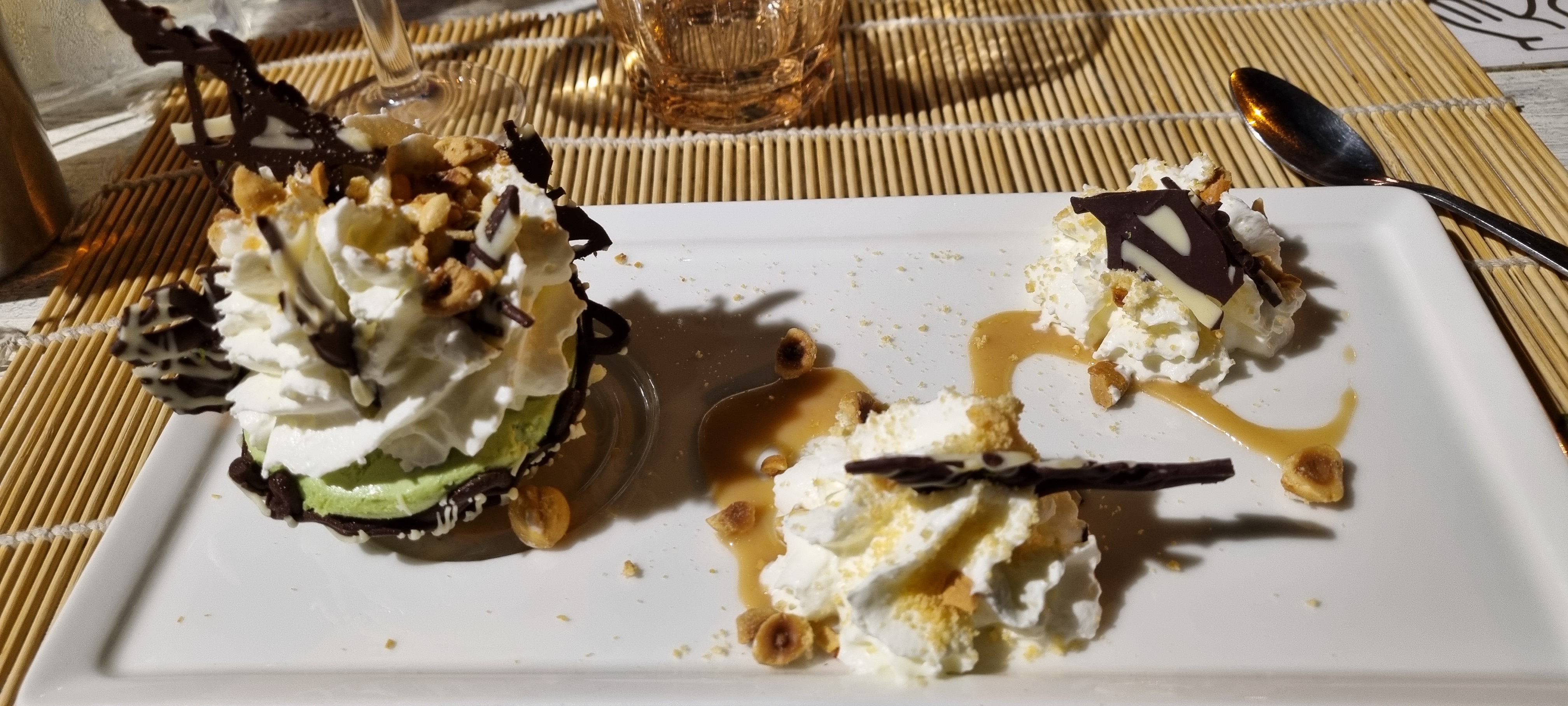 Le dimanche midi c'est grillades au restaurant du Multi-Verres, et les viandes et poissons/crustacés sont soignés, les sauces travaillées, les accompagnements aussi, dans une ambiance amicale et en toute simplicité. Et le dessert à la pistache est trop joli (et très bon) !
