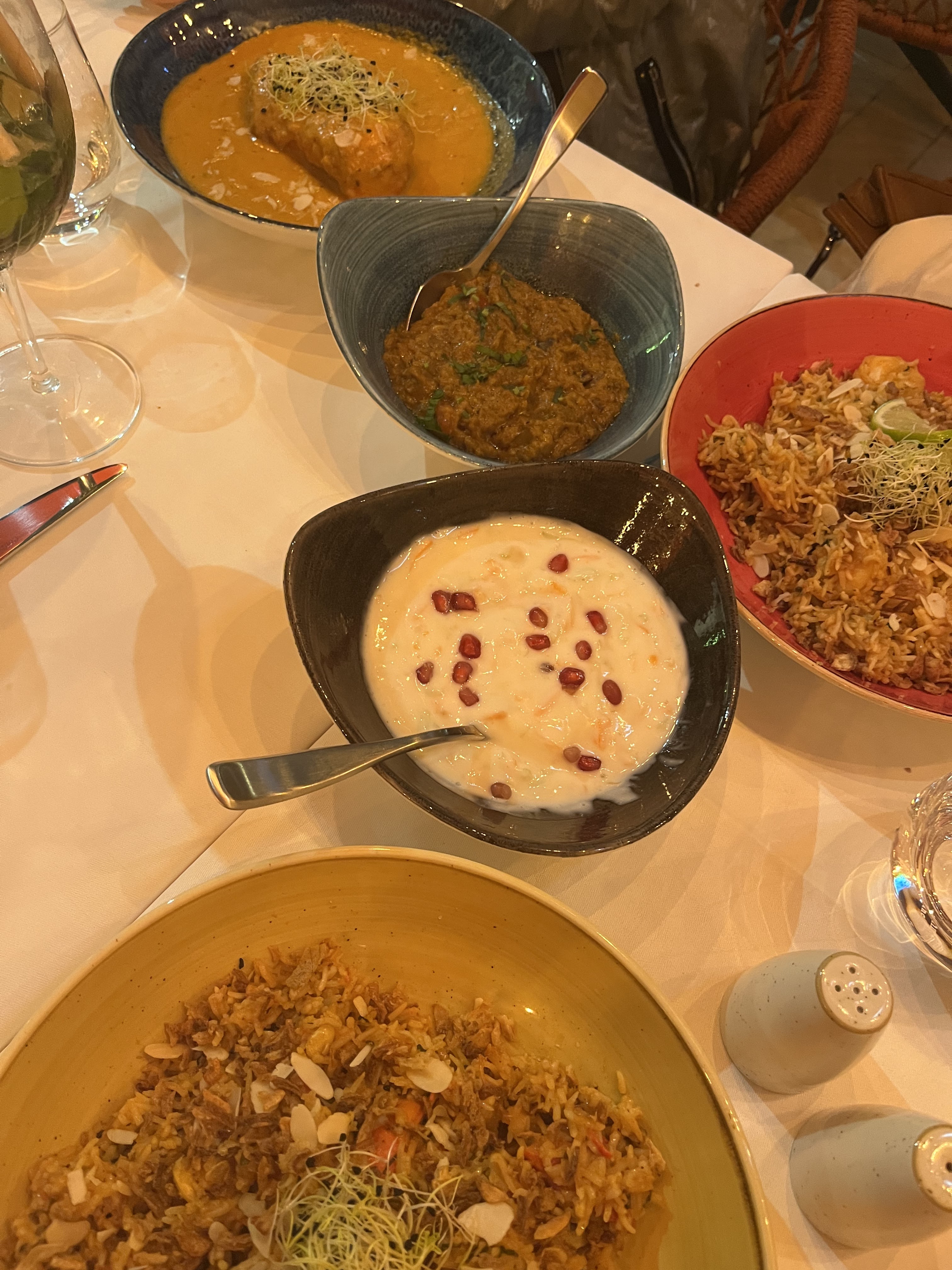 Restaurant incroyable, excellent restaurant, j'adore la cuisine indienne et c'est l'un des meilleurs au monde - oui, je le pense, au monde. Nous avons commandé du poulet au beurre, du poulet masala, du poulet au beurre, de la raita, mais mon préféré est le biryani d'agneau.