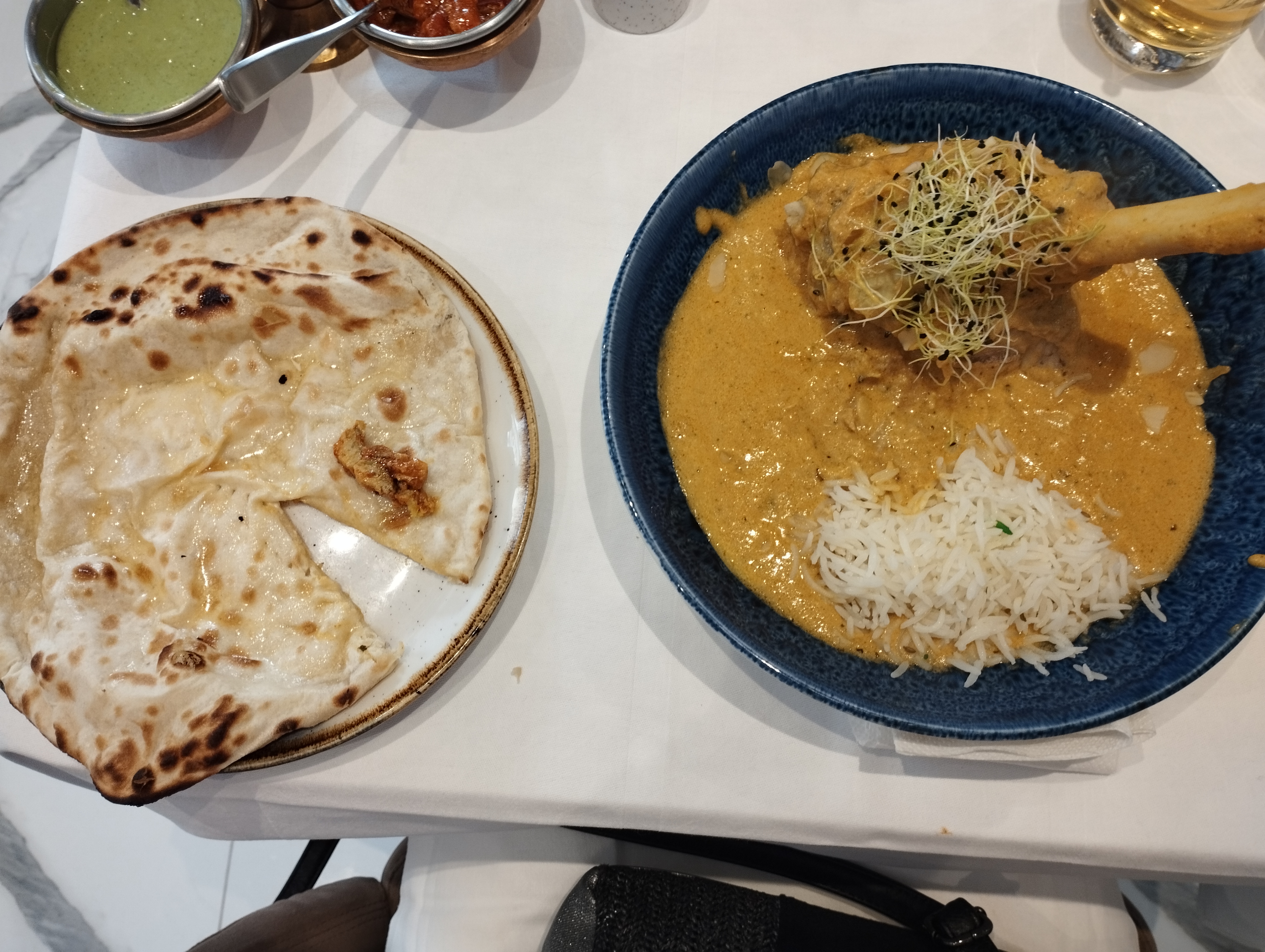 Repas en famille le dimanche midi. C'était très calme (seul restau ouvert) mais on a vraiment apprécié. Au menu différents agneaux, légumes au curry, naan fromage et ail. Tout était délicieux, et bien servi 🤤🤤🤤 L'accueil super sympa et service top. On note l'adresse. 👍