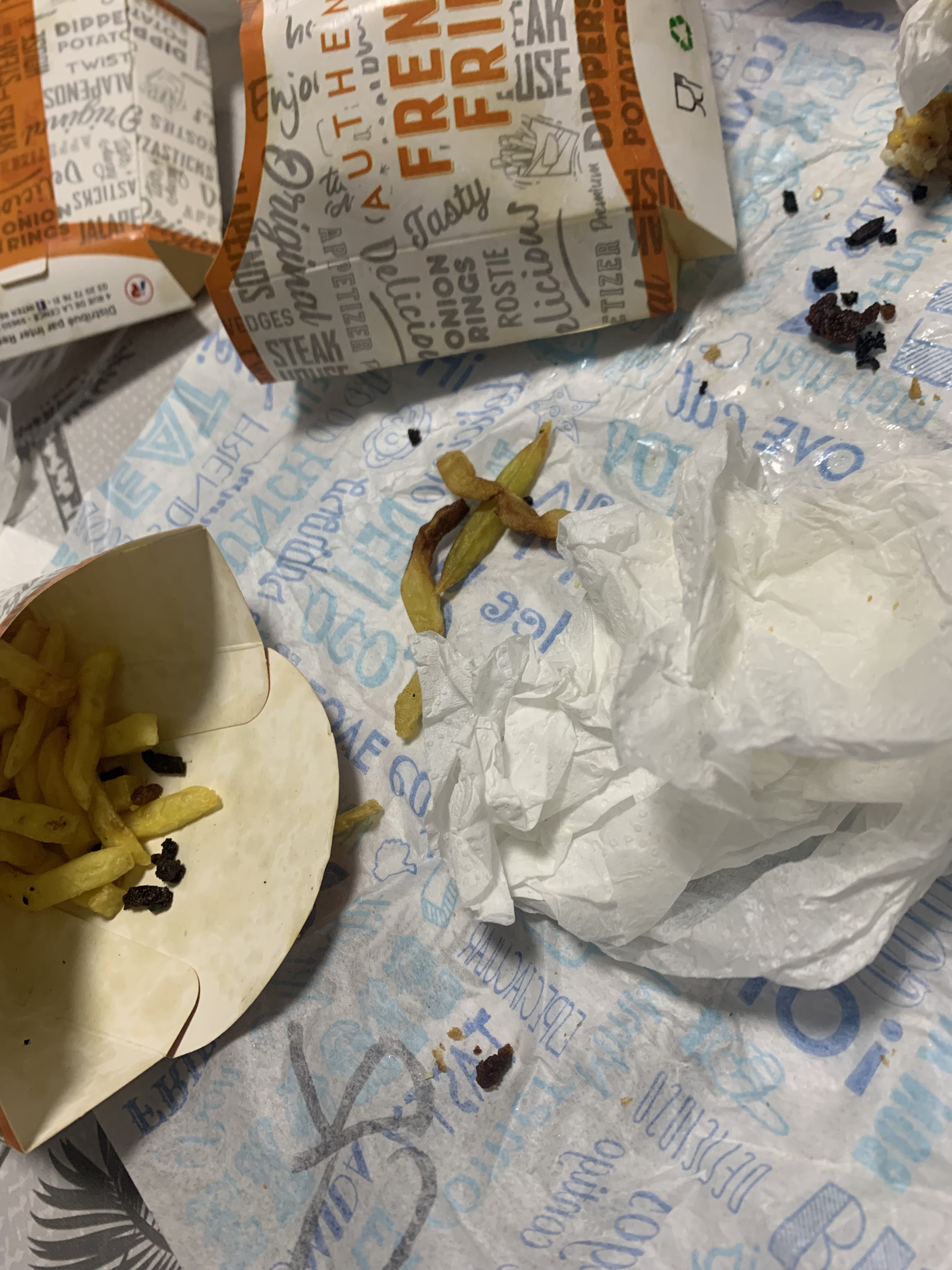 Par où commencer ! Grosse déception ce soir nous avons l’habitude de passer commande chez vous mais ce soir une catastrophe à tous les niveaux.. je fait bref commande passer au tel on rentre avec la moitié de la commande car apparemment la personne qui a pris la commande serait parti en plein milieu du service donc leur collègue devait rattraper le train en chemin donc forcément des ratés en effet on a oublié 2 sandwich donc après être reparti récupérer une deuxième fois le restant de la commande j’ouvre le sandwich chicken ou j’avais bien préciser qu’il fallait coupé la viande en petit petit morceau pour mon fils qui a des soucis on m’a bien dit au téléphone oui pas de soucis ( sinon j’aurai pris autre chose ) on se retrouve avec des morceaux de poulet digne de gros gros cailloux en prime bien huileux les frites fourni avec plein de fond de friture noirs coller franchement venir avec des commandes à 100e et avoir ce service j’ai pas les mots !
