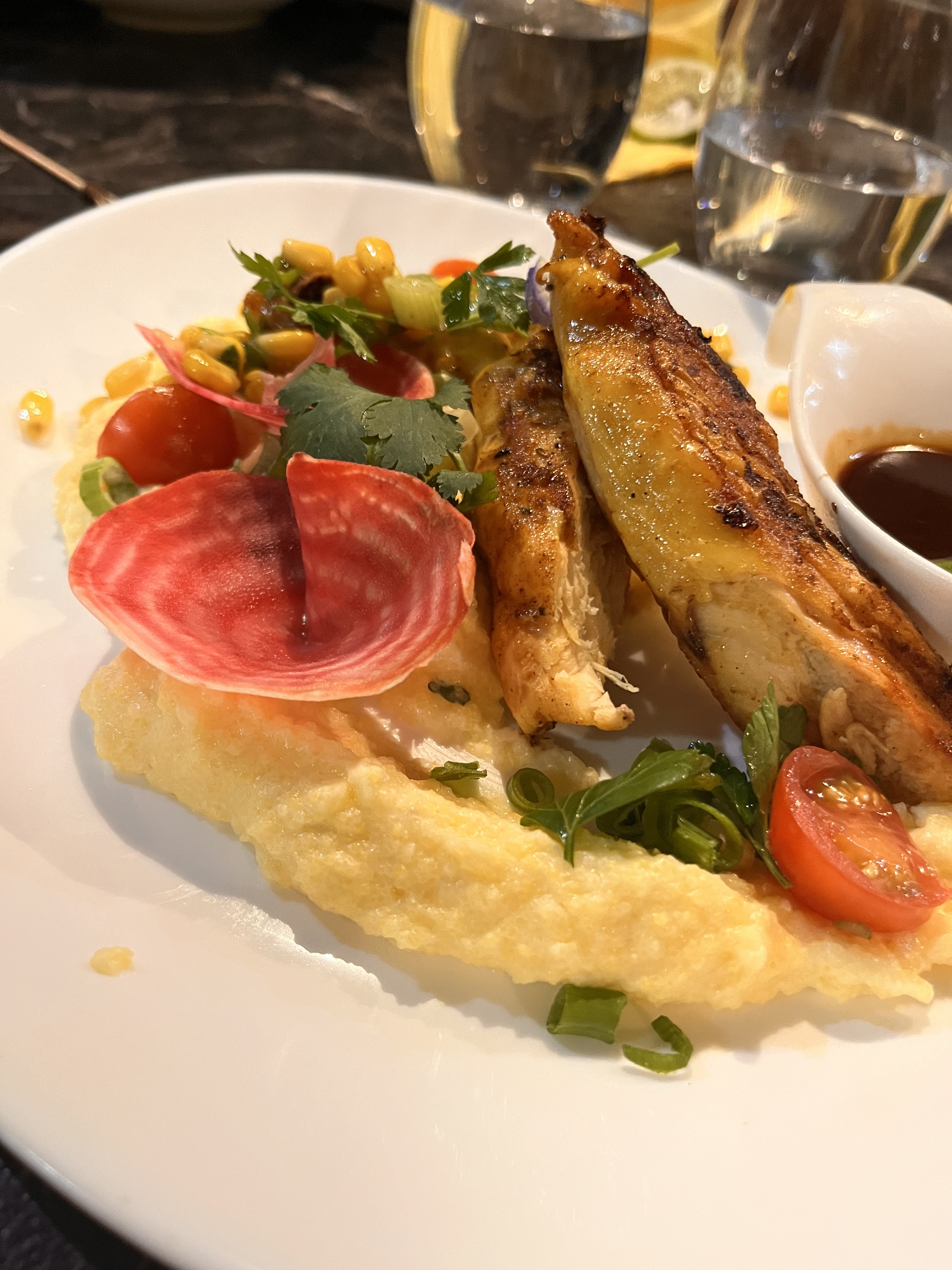 Poulet PAS CUIT Beau restaurant cependant les plats ne sont pas à la hauteur. Prix excessif qualité moyenne les dynamites sont bonnes mais 14€ pour en avoir 3 dans son assiette c’est un peu cher ! Saumon Gravlax 16€ simple saumon sans marinade trempé dans du yaourt pas assaisonné ! Souris d’agneau sans goût, mais la purée est bonne. SUPRÊME DE VOLAILLE RÔTIS du simple poulet bouillit et revenue à la poêle! PAS CUIT les pâtes était bonnes. Ce restaurant ne vaut pas le coup