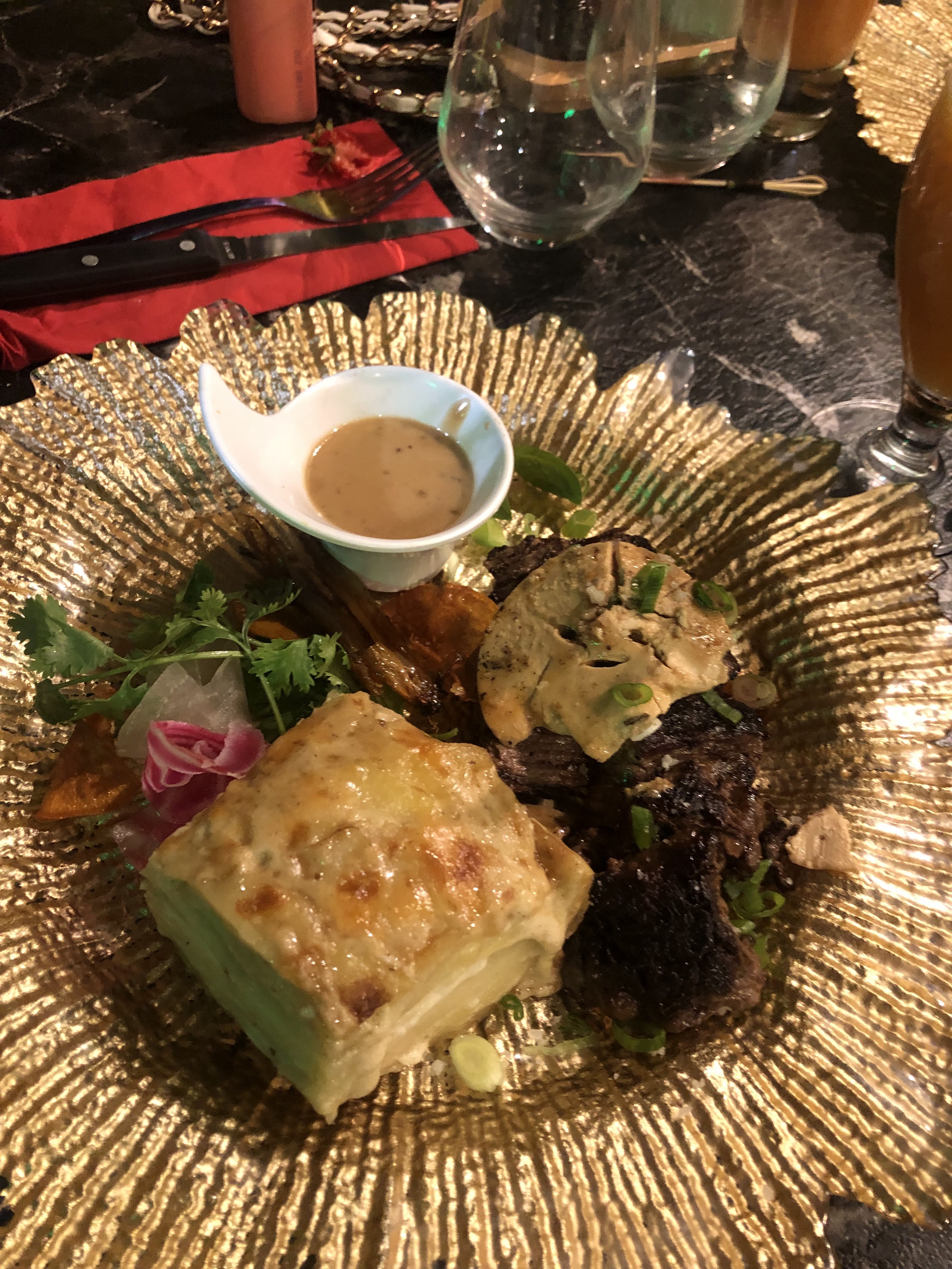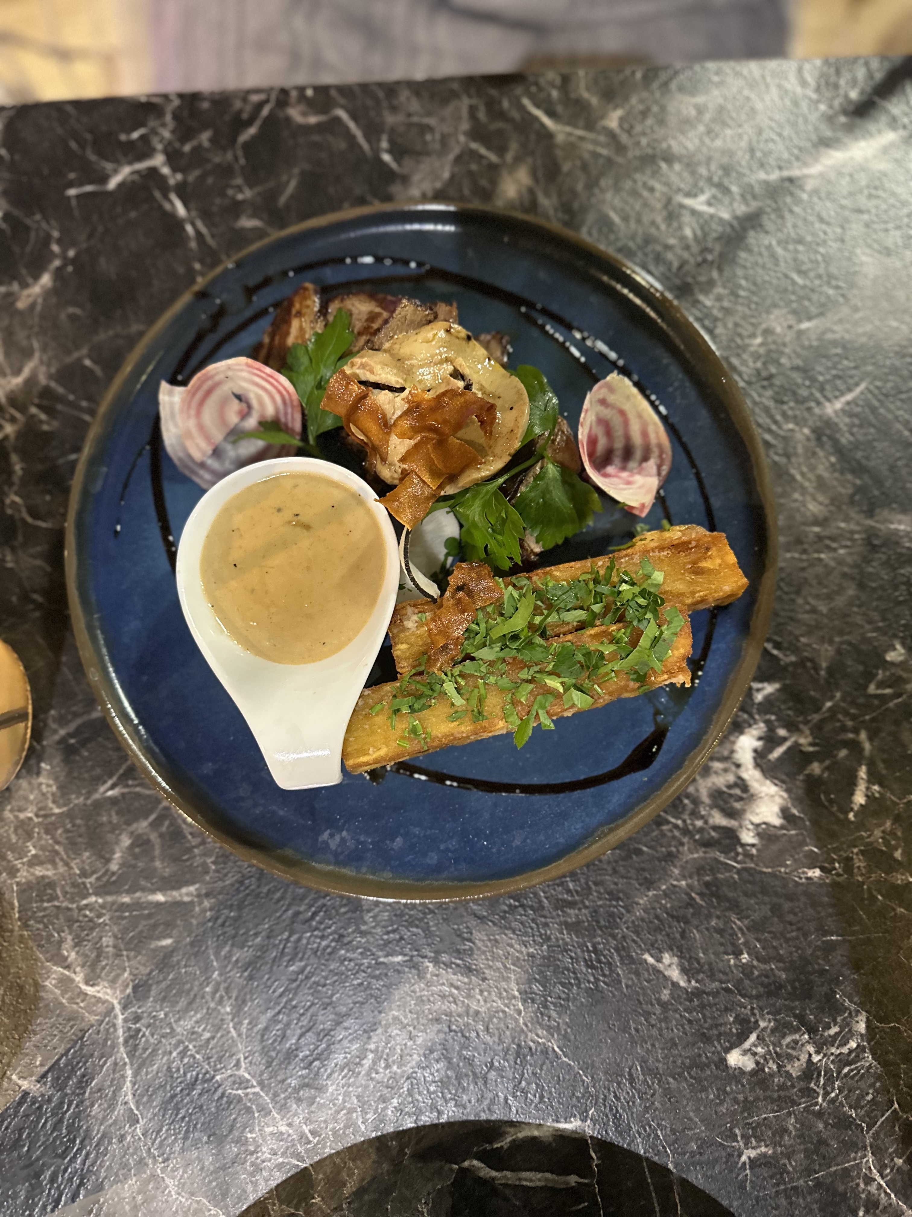 J’ai passé une excellente soirée avec mes soeurs, de l’entrée au dessert il n’y a rien dire , et le décor est incroyable ! Mention spéciale au serveur (il se reconnaîtra) , il a su nous conseiller comme il faut sur les entrées, et le dessert ! Je recommande le tiramisu à la pistache et le fraisier ! En plat la côte de veau et le wok de bœuf sont au top !! En photo l’entrée dynamite une pépite !! C’est avec plaisir que nous reviendrons ! :)