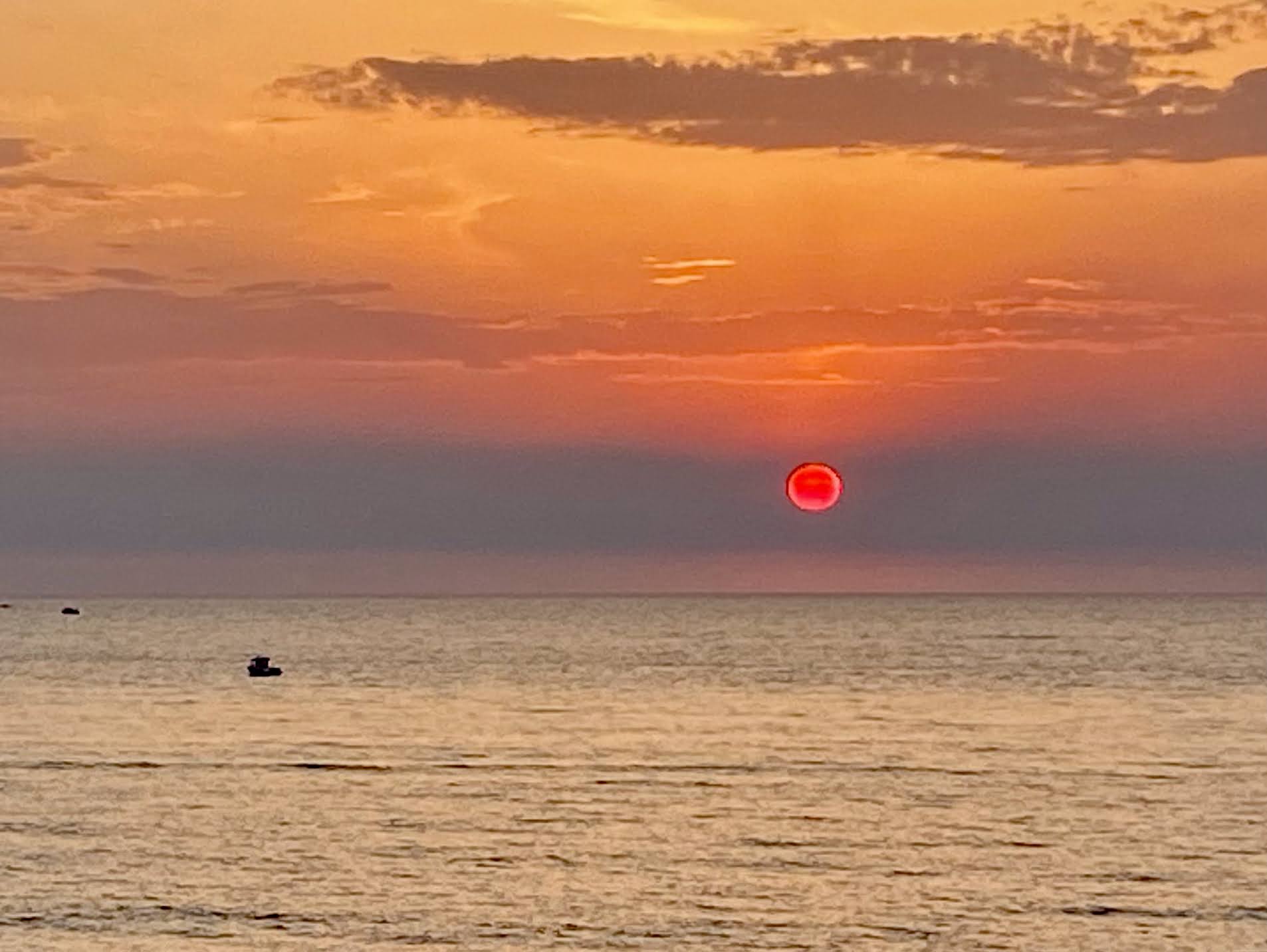 Localisation idéale avec vue sur le coucher de soleil. Service gentil mais assez lent. La carte est simple, pas de menus. Les plats sont moyens, nous avons pris une pizza (croûte épaisse) et le thon mi-cuit (pas tant que ça en fait, plutôt trop cuit). Déçue par les profiteroles qui manquaient de croquant et surtout de nappage chocolat.