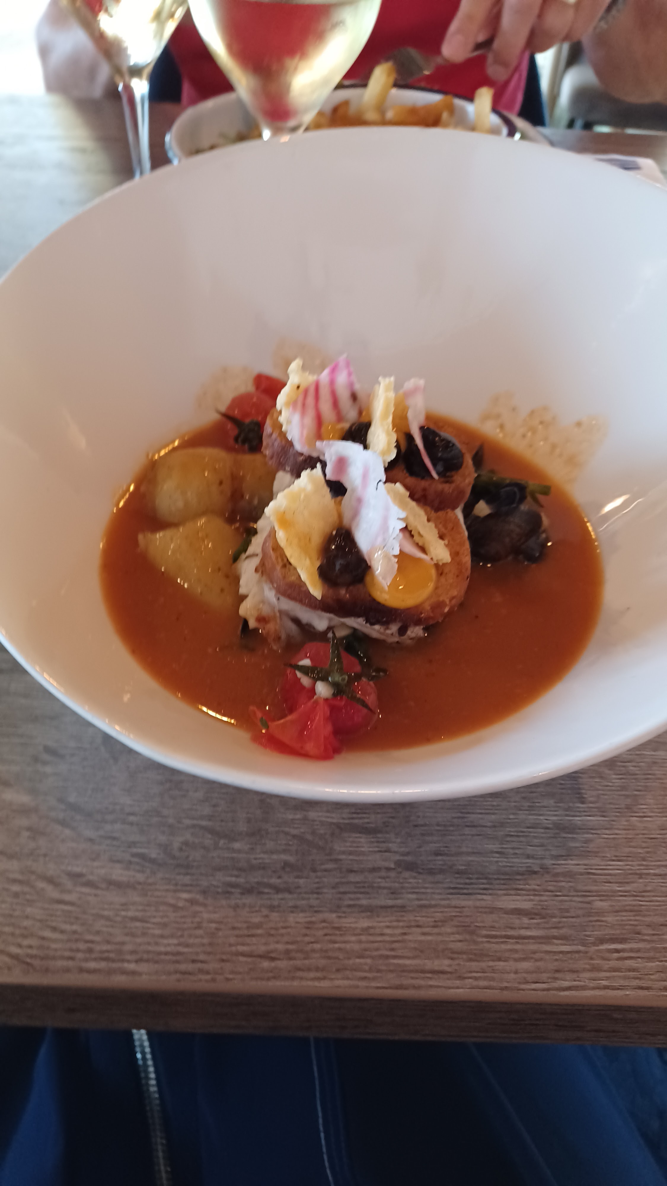 Superbe adresse! Nous avons été super bien accueilli par Anne Sophie qui nous a prit la commande des apéritifs. Ensuite à table nous avons eu le plaisir d’être servi par Bertrand qui a beaucoup d’humour et surtout très souriant. Un service de qualité. Tout était bon, emplacement magnifique. Cerise sur le gâteau nous avons eu une table en première ligne. Nous reviendrons! Je recommande les yeux fermées ⭐️⭐️⭐️⭐️⭐️