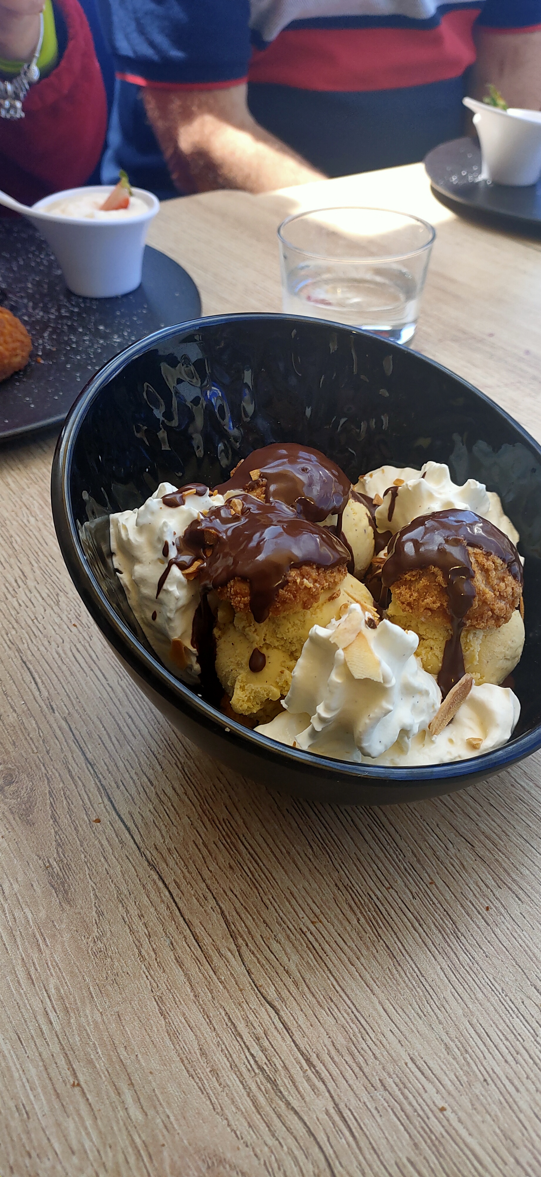 Très bon restaurant, accueil très sympa ! Même avec les eperlans sur les genoux 😉😂 Le burger au top et un délice de profiteroles 🥰