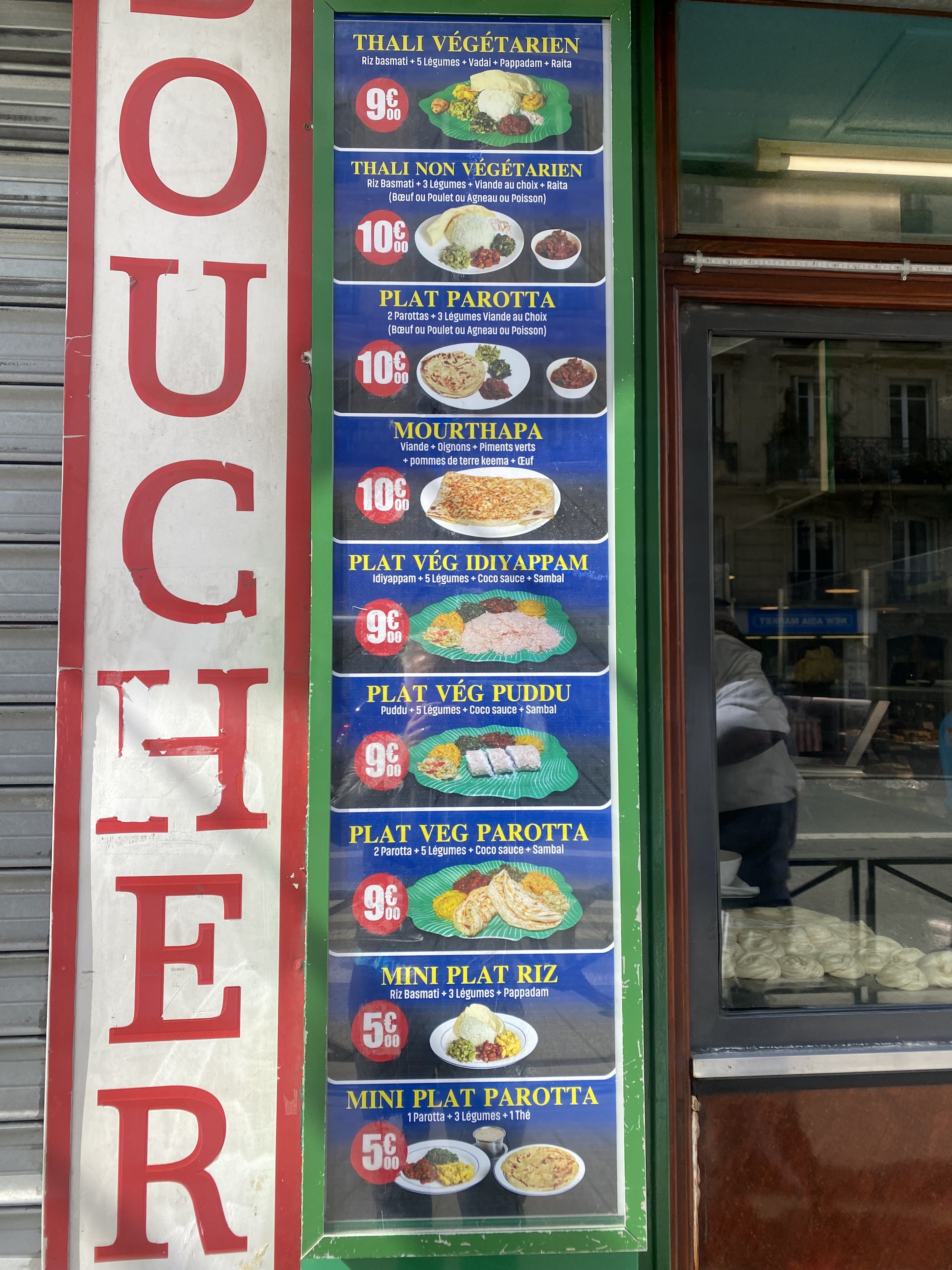 Mon resto préféré. J’y vais chaque dimanche midi depuis 3ans. Le plat parotta ou briyani bon et copieux, un ventre rempli pour 8€ garanti. Les parotta fait à la main devant la vitre sont un délice et petit spectacle sympa. Les hors d’œuvres (rolls et où rotti) sont vraiment bons et pour 1€ pièce. 2/3 suffisent pour calmer un petit creux.