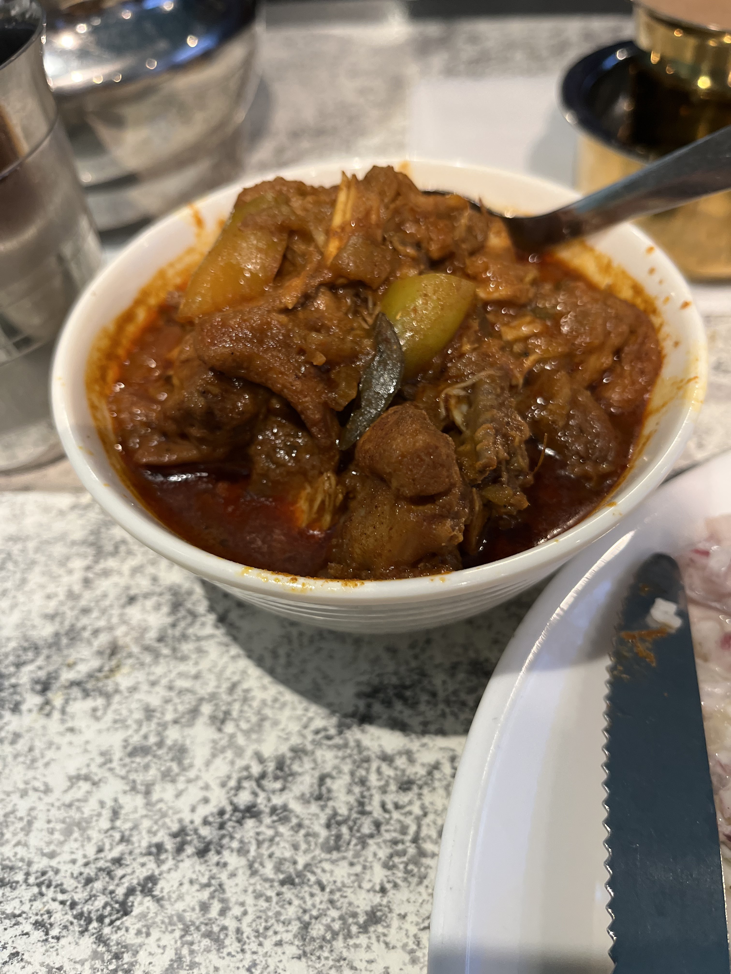J'ai commandé un porotta de mouton kuthu, bon goût et bon service.