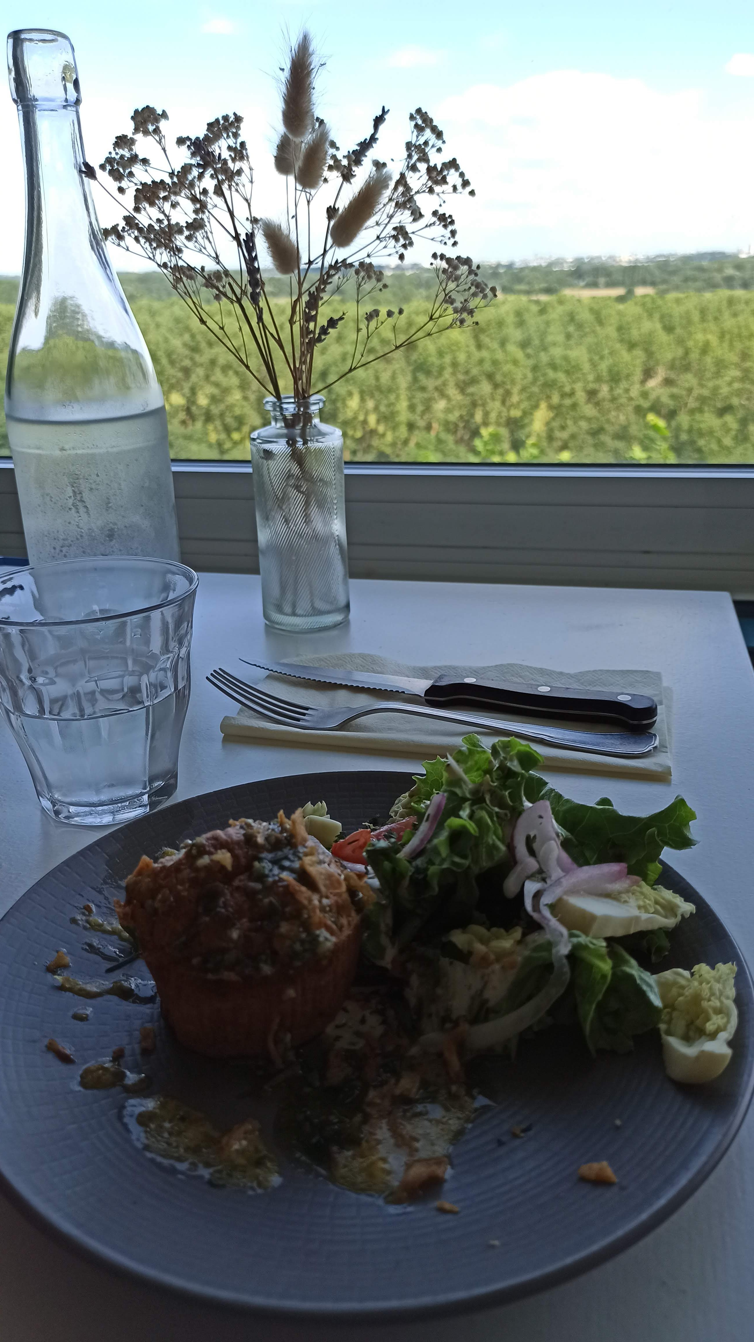 L'emplacement est top. La salle domine la vallée du Louet. Lumineux et spacieux le restaurant donne envie d'y passer du temps. J'ai juste consommé une bière locale côté petit salon très sympa. Je viendrai tester le repas la carte à l'air sympa. Facile pour se garer...en semaine.
