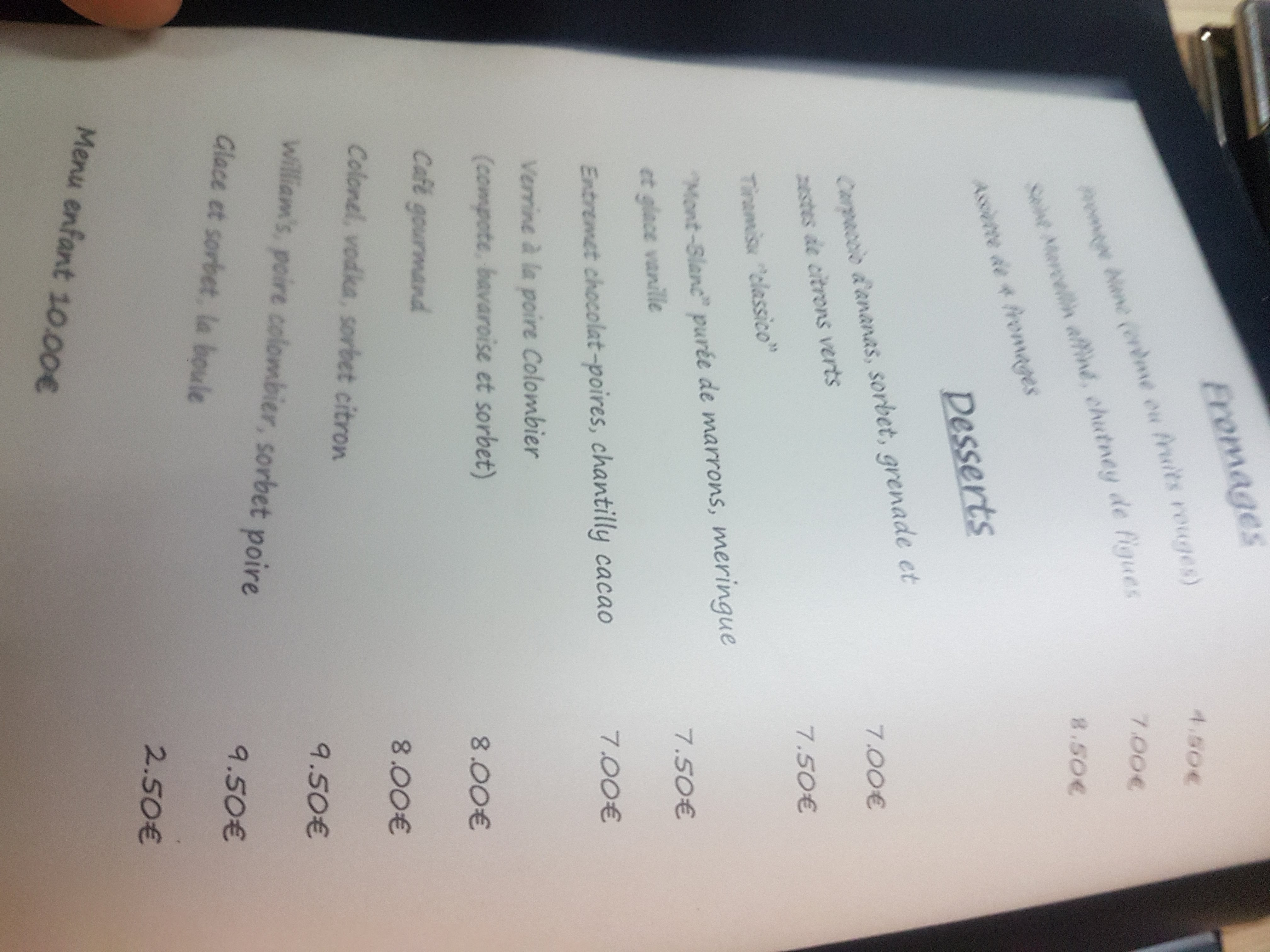 Bonjour, nous avons pris le menu du jour, c'était excellent, pas cher (moins de 20€), bien servi et vraiment très agréable, je recommande chaudement, encore merci :-)