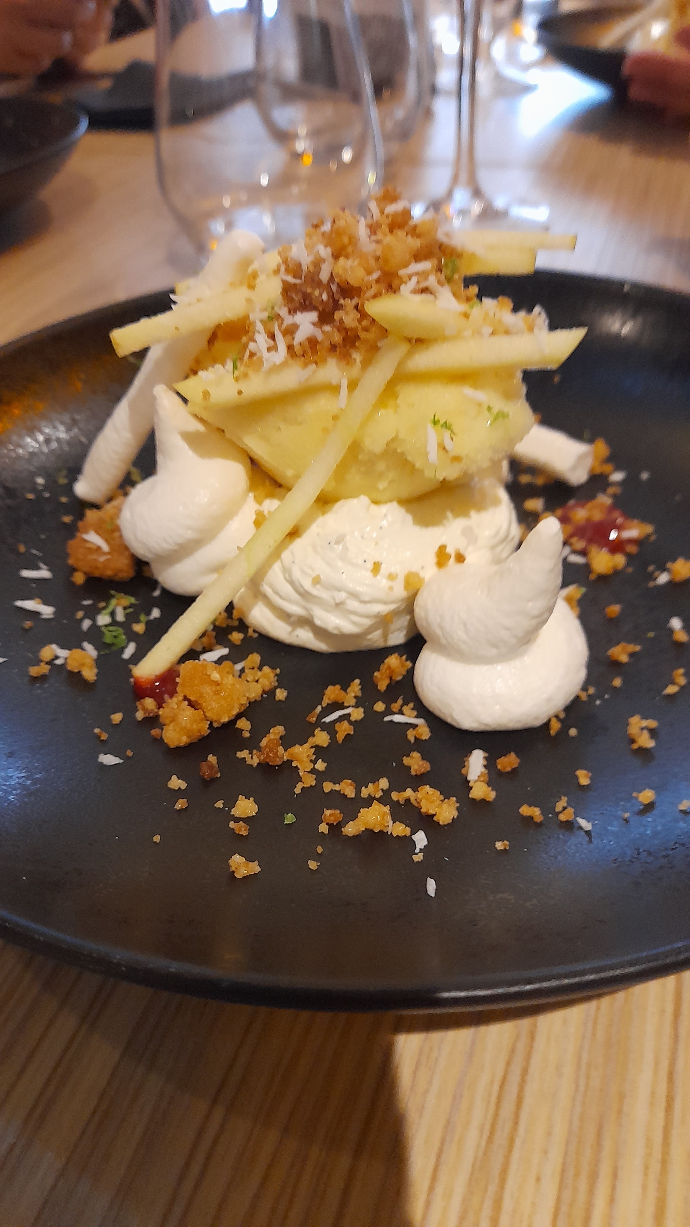 Que dire? Dire que c est un parcours sans faute, que nous avons vu des tableaux gustatifs que nous n'osions manger. Dire que c est un festival pour les papilles et un feux d artifice pour les yeux. Et rajouter que le personnel est accueillant et surtout bienveillant. Venir ici, a été pour nous un pur bonheur alimentaire et un moment convivial. Alors en un seul mot et a toute la equipe, je vous dis: MERCI