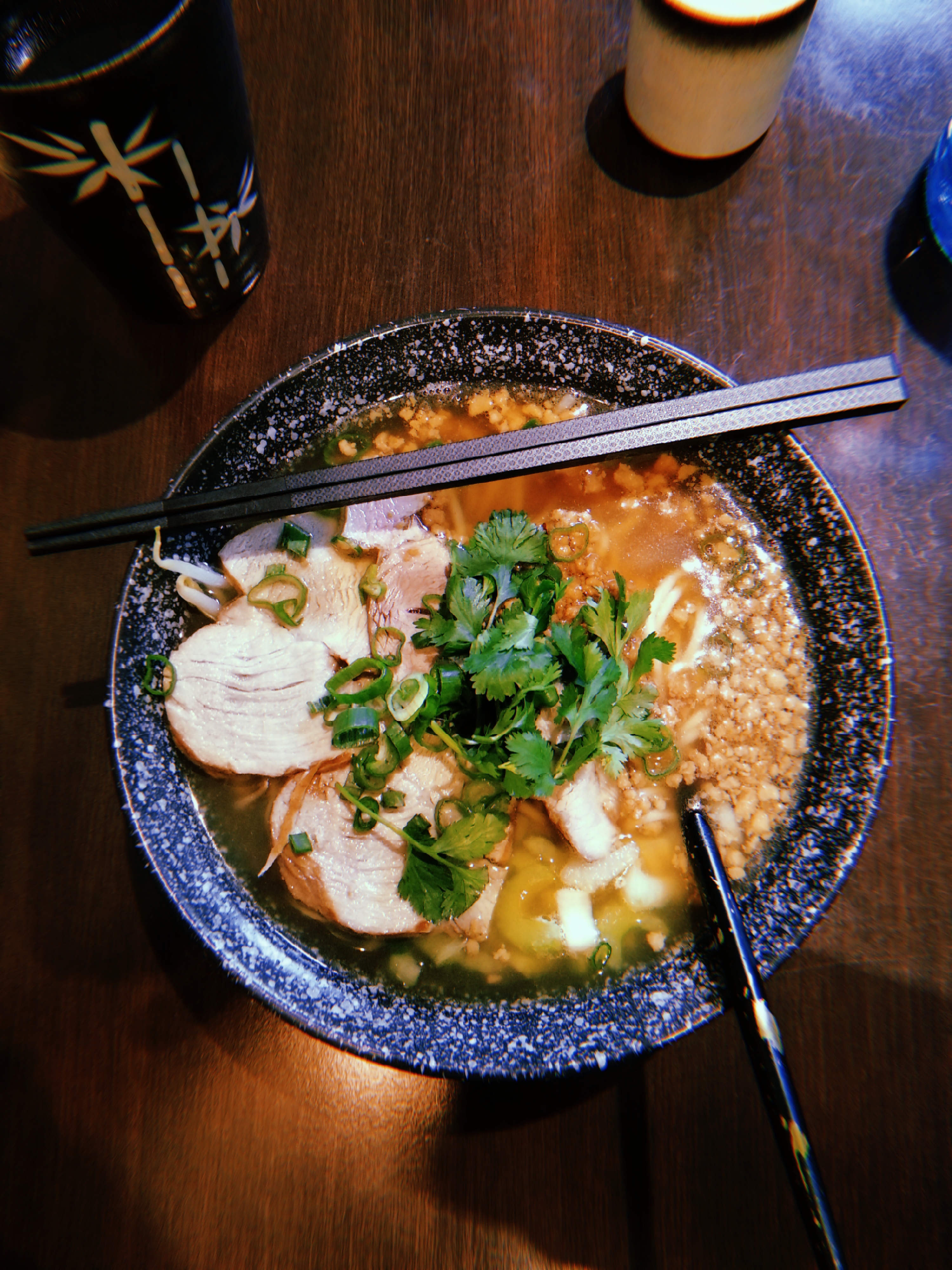 On y est allés pour fêter un anniversaire et au-delà du restaurant bien placé (en face du métro a peu de chose près) l'accueil a été très sympathique. La carte est limitée dans les choix mais c'est ce que je préfère, tous les plats sont à 13€ à l'exception de celui qui est végétarien. Le poulet croustillant est bien croustillant, le bouillon de la soupe était très fort en goût et les nouilles fraîches. En entrée les lamelles de boeuf sont excellentes et nous n'avons pas été déçus par les desserts notamment les mochis au sésame noir et fleur de cerisier qui étaient incroyables de part la pâte de riz ainsi que le coeur glacé à l'intérieur. Bref un bon petit restaurant à connaître.