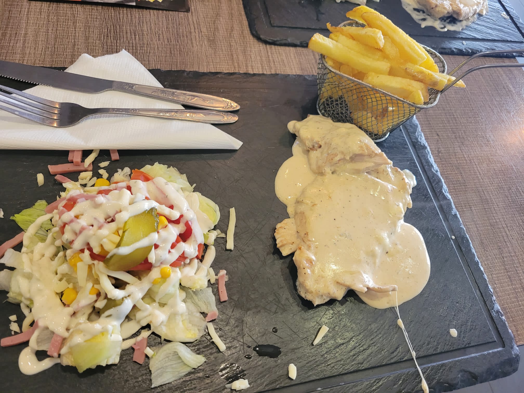 Pas mal, les frites sont vraiment bonnes mais le reste n'est pas incroyable, la viande est trop cuite de partout ( assiette, tacos, roulé ), le restaurant parait un peu sale également. Malgré ça ce n'est pas mauvais et personnel très chaleureux