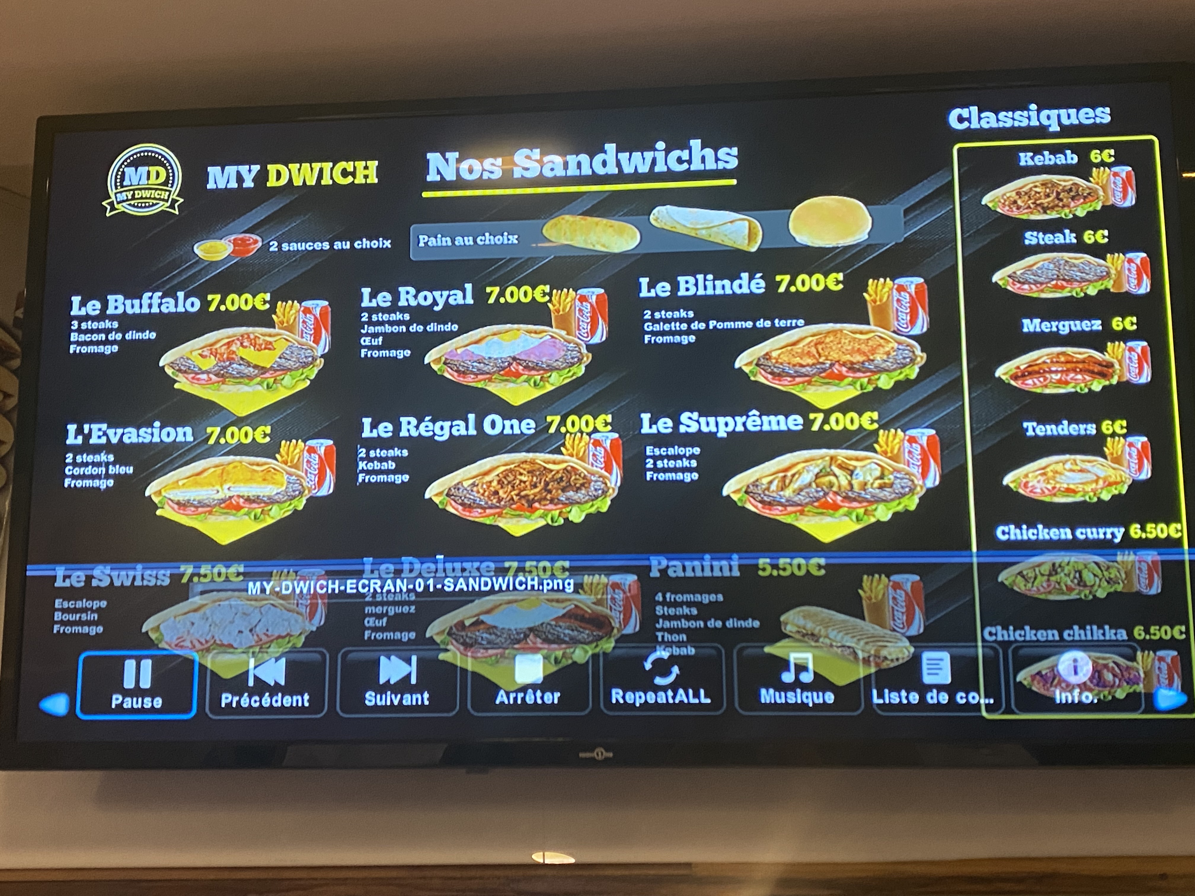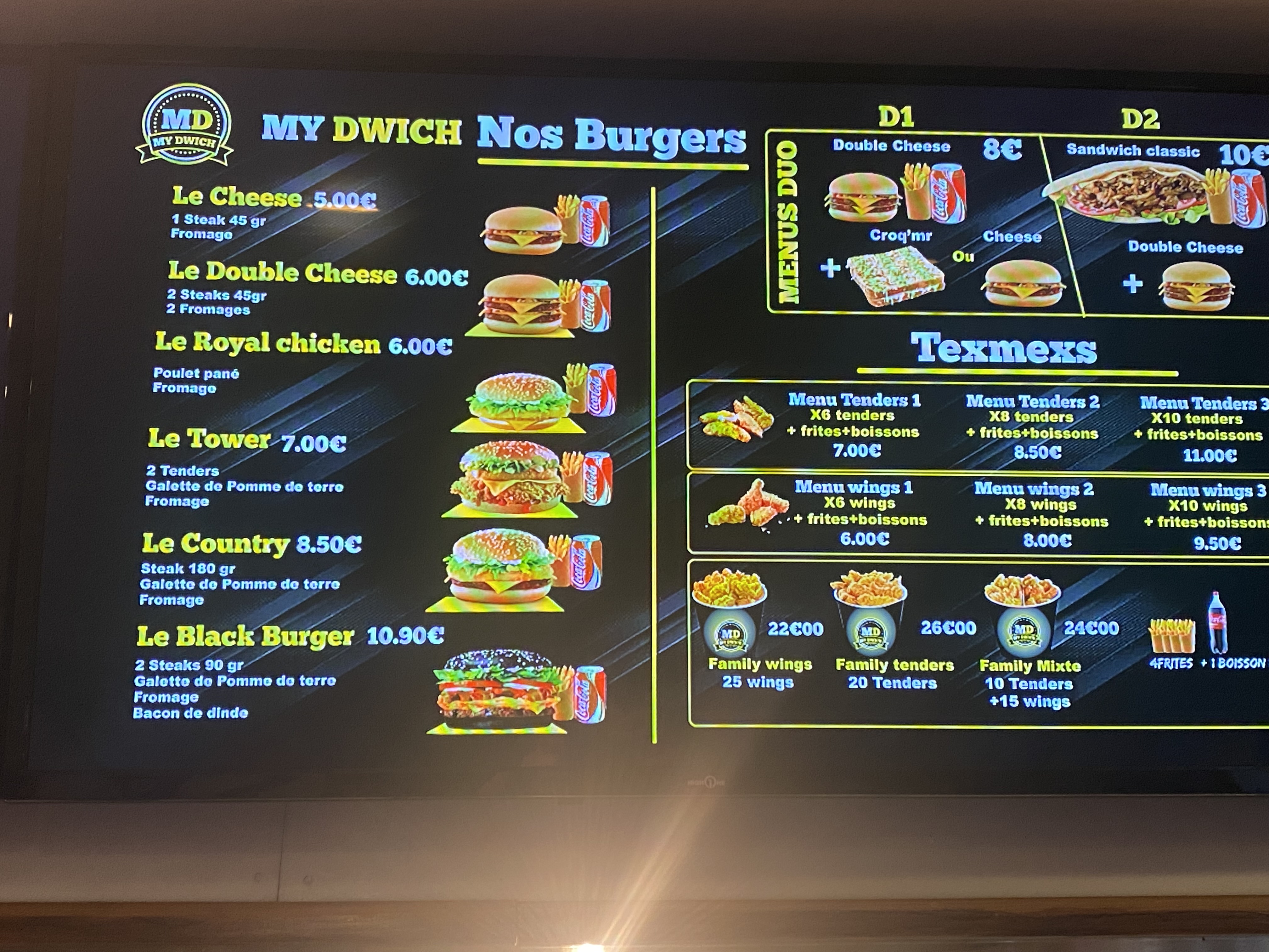 Rien a redire pour ceux qui connaissent le kebab mani à Sainte Geneviève ou le prix est aberrant vous régalerez beaucoup mieux est à moindre coût chez My dwich je vous l'assure.