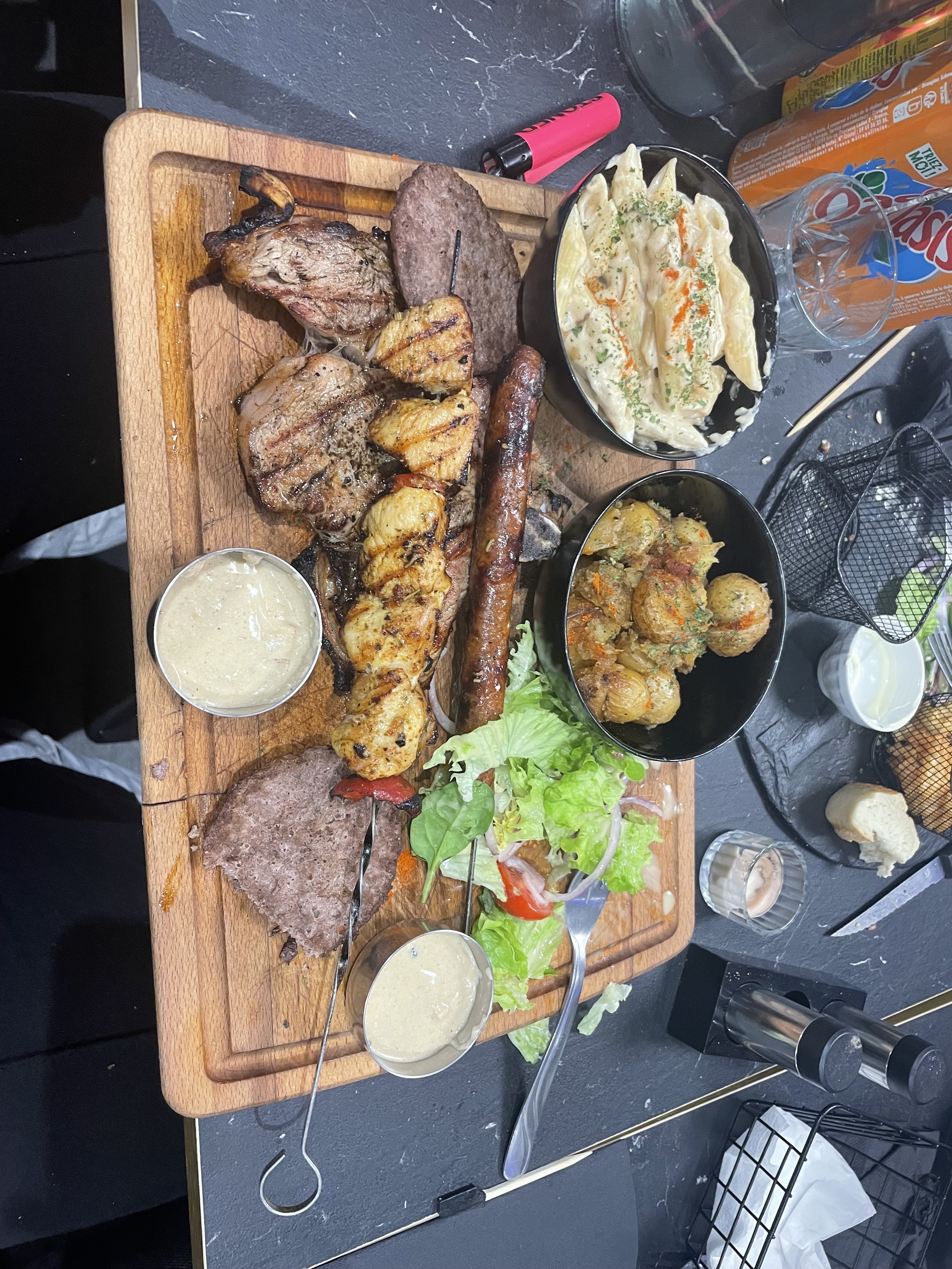 Bon service et une viande bien marinée et tendre, ambiance familiale et chaleureuse; merci!!!