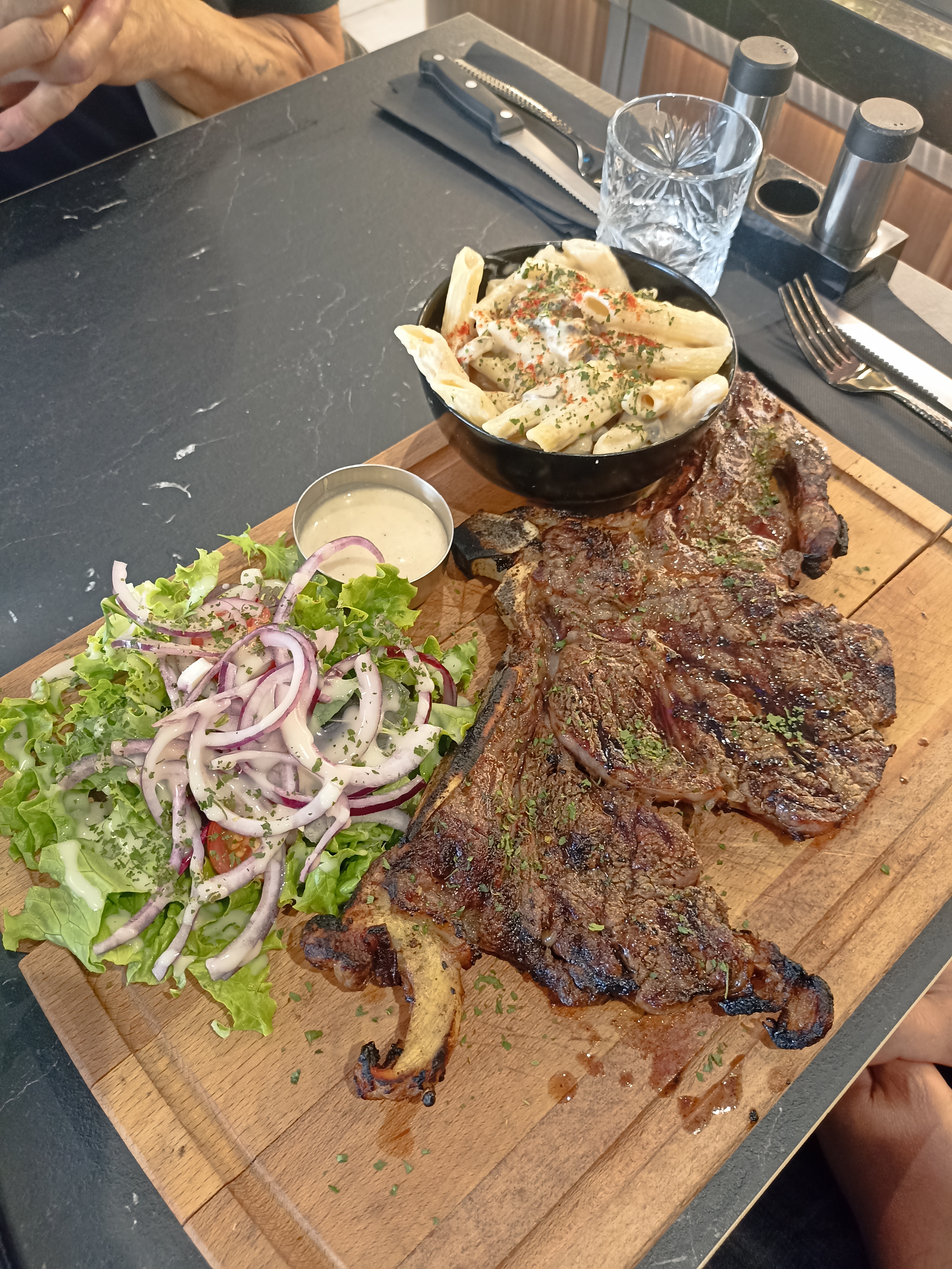 Repas excellent, j’ai pris une entrecôte et une salade buratta. Je me suis régalé. Service rapide et efficace Je recommande fortement