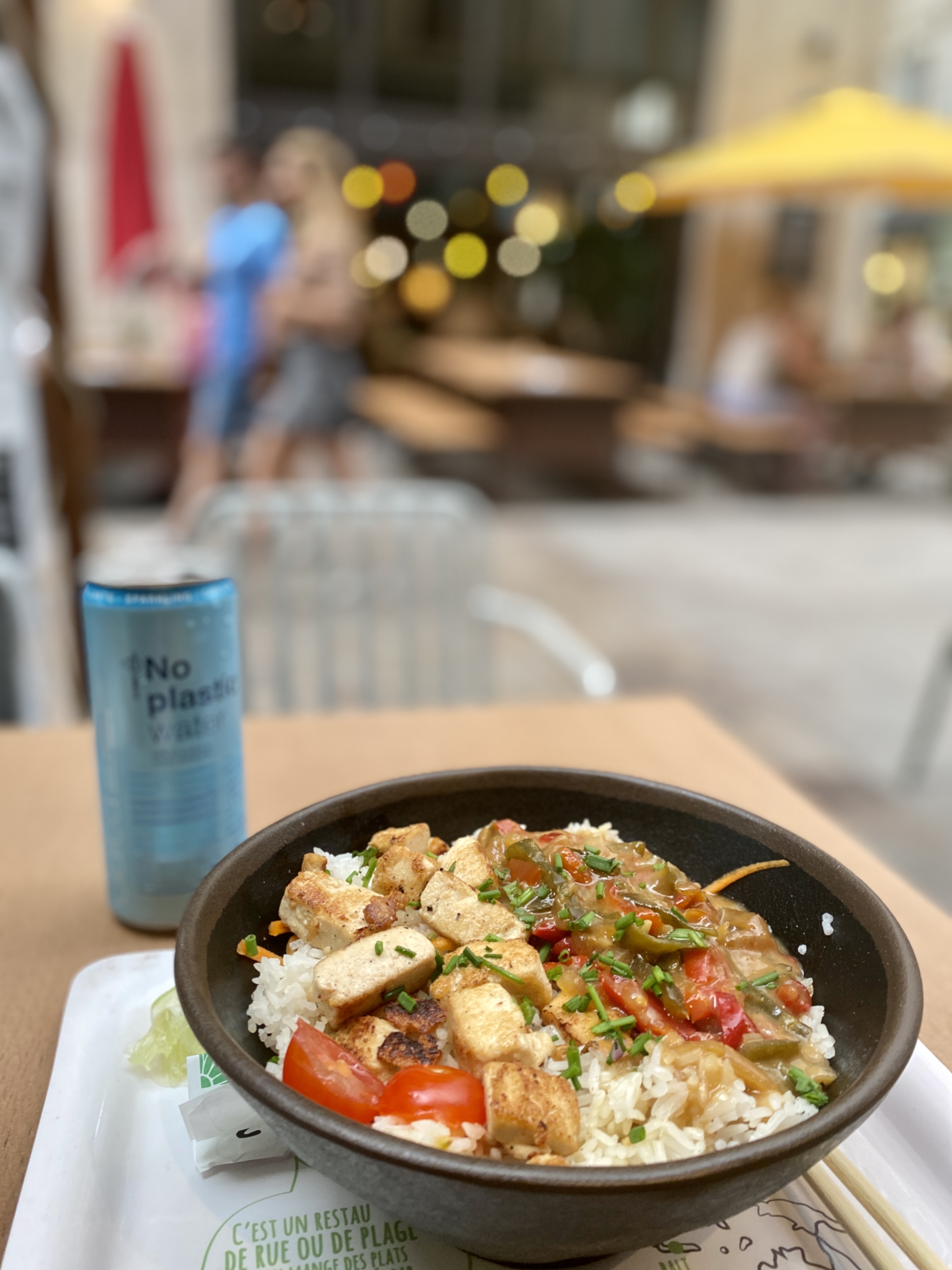 Bali curry vert version vegan, un bon repas et le rapport qualité/prix correct. J’ai un peu moins apprécié le dessert de fruits provenance la boîte de conserve.
