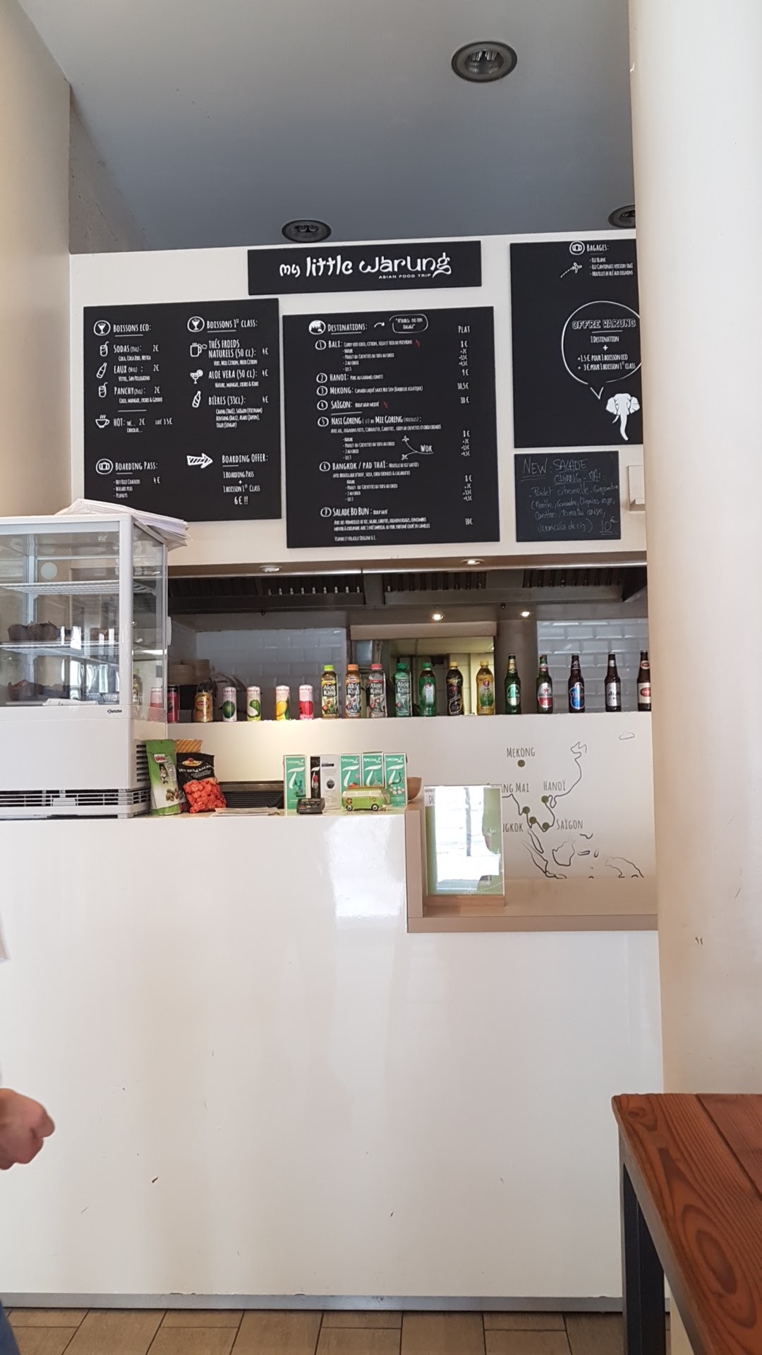 Et bien je vais dénoter aussi, je n'ai vraiment pas aimé.. Je connaissais Cook'on l'ancienne franchise des actuels propriétaires du My little warung et c'est triste à dire mais c'était bien mieux et bien meilleur avant. Nous y sommes aller à 4 et avons tous été terriblement déçus. D'une part nous avons eu droit à des plats réchauffés et non cuisinés devant nous comme c'était le cas avant, d'une autre part nous étions deux à avoir commandé un bobun et nous avons eu 2 plats complètement différents (je crois d'ailleurs que l'intitulé du saigon a d'ailleurs été changé à la suite de nos remarques car pas clair du tout). Mon plat était hyper sucré et tiède, et les nems ne valent pas ceux d'un vrai asiatique. Nous avons tenté une seconde fois l'expérience en se disant que c'était les débuts et qu'il fallait laisser le temps aux choses de se mettre en place mais nous avons été tout aussi déçus avec une sauce vraiment écoeurante . En bref, je regrette amèrement le cook'on d'avant tant par la qualité des aliments que par les recettes choisies.