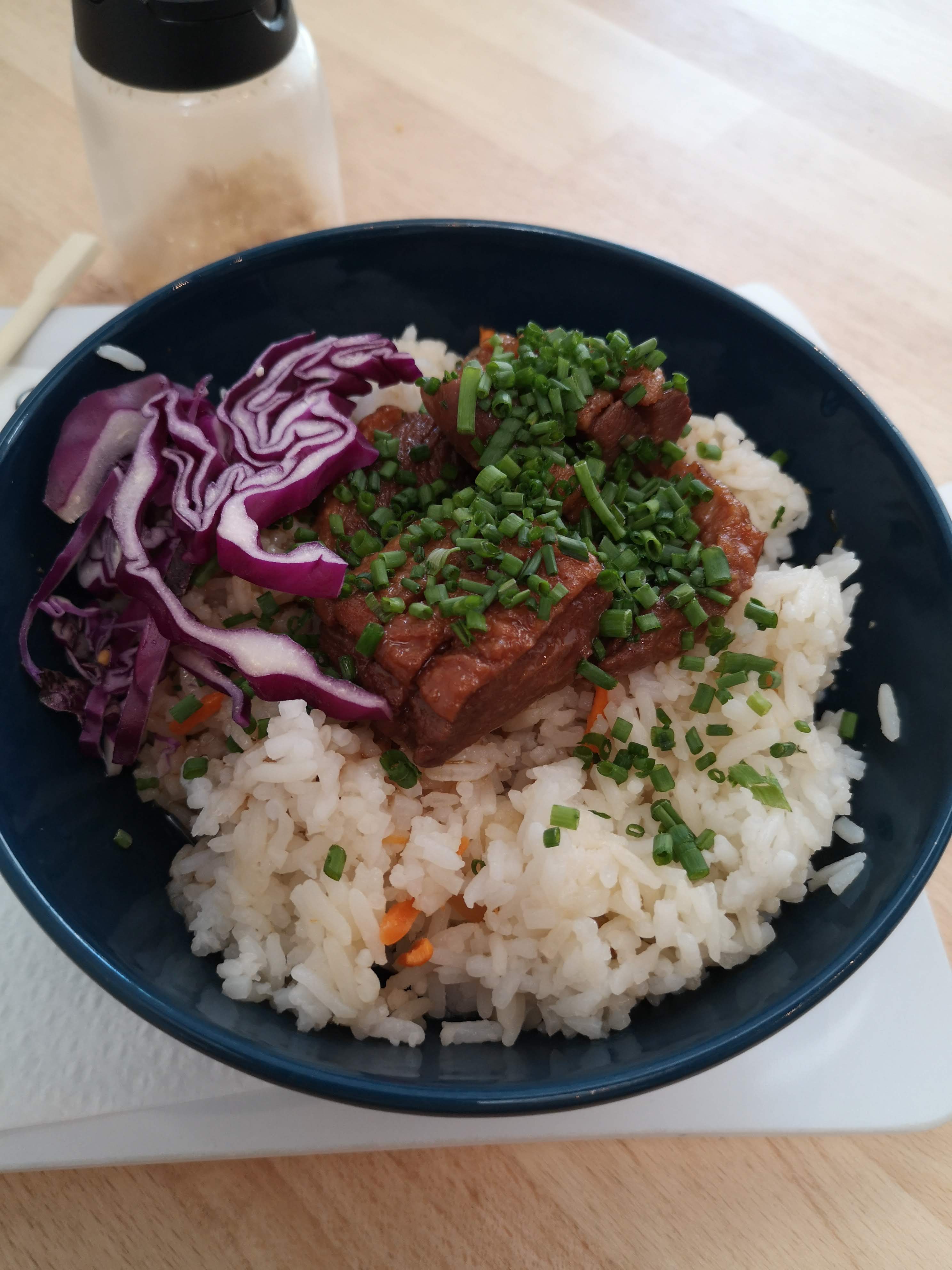 Trois morceaux de boeuf qui se courent après dans le minuscule bol, plat très fade dans l'ensemble, plus de carottes que de nouilles, et livré sans couverts ni serviette alors que c'était réclamé sur la commande (un oubli peut arriver mais ce n'est pas top pour les personnes qui mangent en extérieur). Bref, trop cher pour ce que c'est à mon sens. On mange bien mieux ailleurs et pour moins d'argent dépensé.