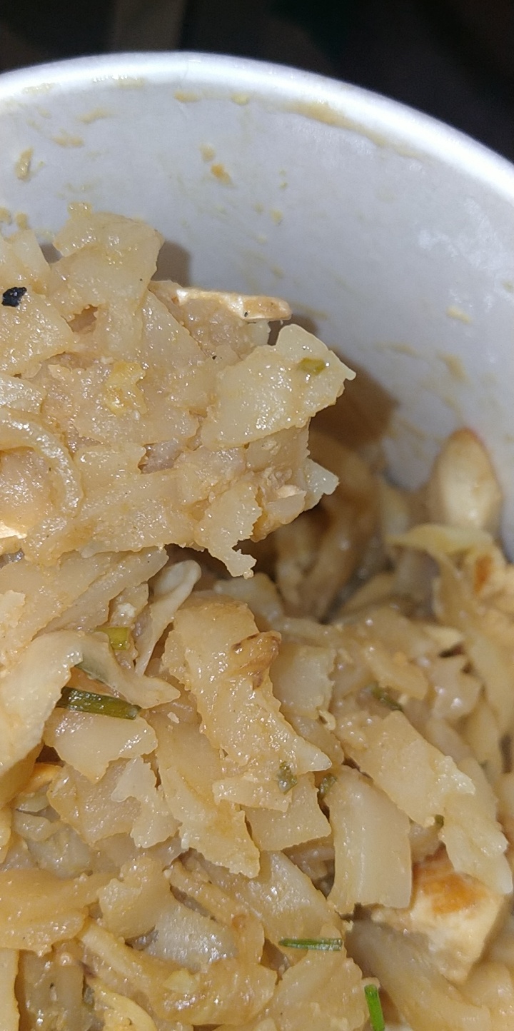 J ai acheté pour mon repas de midi un menu BANGKOK PAD THAÏ aux crevettes. Celles ci doivent toujours nager 2 crevettes ! Nouilles hyper collantes mais goût excellent attention