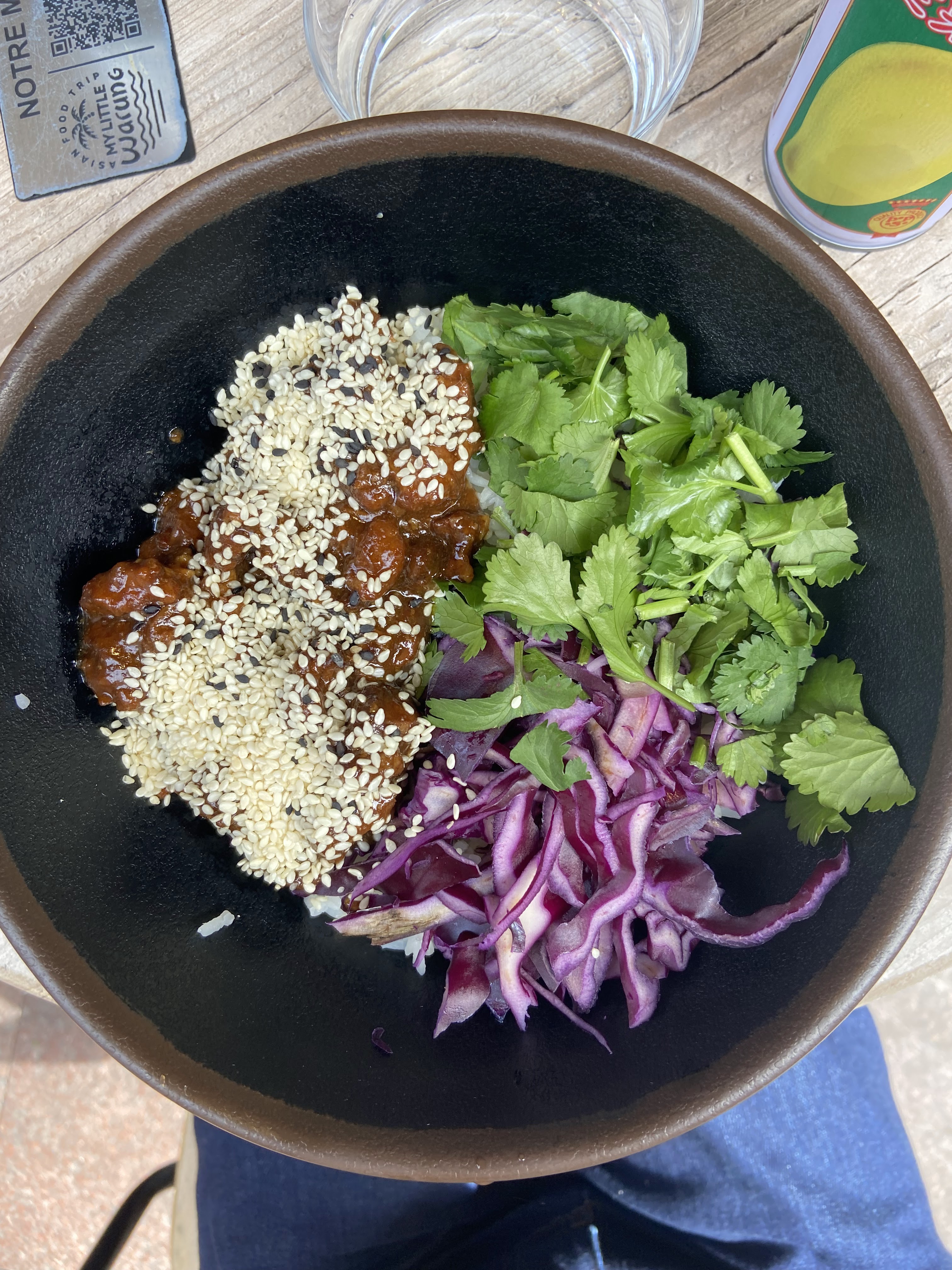 Adresse très décevante... De l'accueil jusqu'au dessert ! Pas de réel accueil, le serveur est inexistant... Ensuite, pour commander, il faut uniquement passer par le QR code disposé sur la table (comme c'est écrit à l'entrée de l'enseigne). Arrive un groupe de 6 personnes et je découvre qu'on peut bien commander au comptoir, directement avec quelqu'un, contrairement à ce qui est indiqué. On commande donc un Bobun bœuf citronnelle (à 12€) et un menu Poulet Satay + boisson + 1 cookie (15€). Les goûts sont bons mais malheureusement, les matières les moins coûteuses sont disposées en masse dans le bol ! - Le poulet Satay : d'après les photos et le nom du plat, je m'attendais à avoir une base de riz recouverte d'un 1/4 de chou rouge, d'un 1/4 de cébette+ciboulette et quasiment d'une moitié de poulet et de sauce, avec quelques cacahuètes en topping. À la place j'ai une quantité de riz presque abusive (bien trop pour une personne), la moitié de mon plat recouvert par du chou rouge, 1/8 de cacahuètes, 1/4 de cébette/ciboulette et la place qui reste, c'est du poulet et un peu de sauce. C'est-à-dire que j'ai eu 5 minuscules morceaux de poulet, comme si c'était un topping... Alors oui, le plat est consistant mais uniquement grâce au riz ! - Le Bobun, exactement pareil ! 5 minuscules tranches de bœuf et le reste : que des légumes et des vermicelles. Bref, ça ne vaut vraiment pas les 12€. Arrive ensuite le dessert : le cookie arrive complètement glacé... Si le stock de cookie n'étant pas disponible directement car complètement congelé, autant dire qu'il n'est pas disponible à la vente. J'aurais préféré ne rien prendre en dessert plutôt que de payer pour quelque chose qui n'était pas bon et pas correctement comestible sur le moment. Je veux bien croire que parfois il y a des mauvais jours mais j'ai vu d'autres commentaires similaires au mien concernant les quantités... C'est la crise pour tout le monde et quand on mange à l'extérieur, on aimerait bien s'y retrouver financièrement, tout autant que vous, les commerçants...