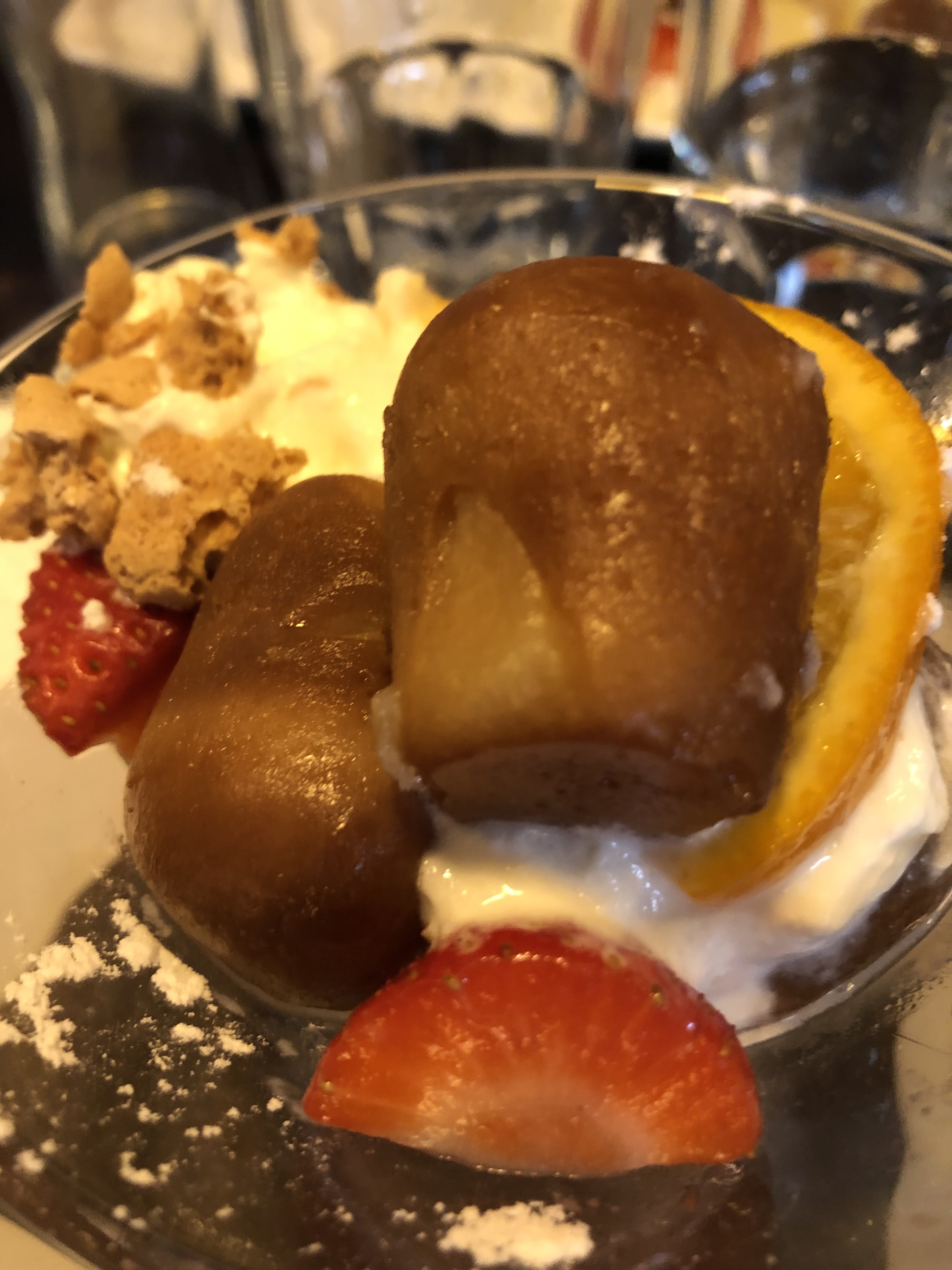Ce n'est pourtant pas la première fois mais cette fois ci j'ai été déçu. Pas de profiteroles, un tirzlisu minuscule dans une tasse et sincèrement très moyen. Musique d'ambiance trop forte ! Relativement cher pour ce qui est proposé !