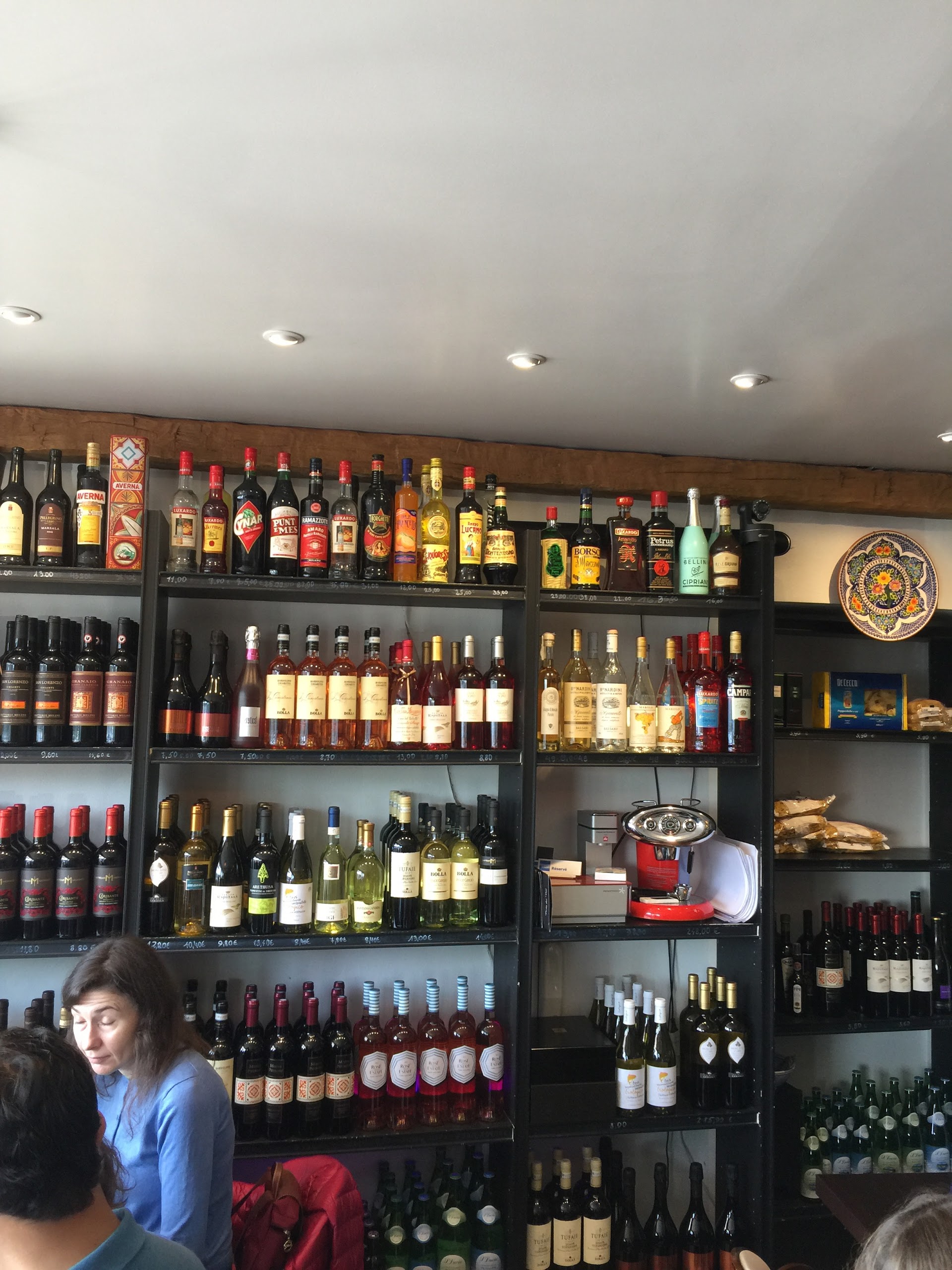 Véritable cuisine italienne faite maison. Pâtes et desserts excellents. Belle carte de vins italiens au verre. Service long, conséquence du tout fait sur place. La petite salle avec vue sur la Seine ne comporte que 22 places serrées. Quelques tables en terrasse. Réserver est indispensable le weekend et en période de vacances. Décor fait de produits alimentaires, vins et alcools italiens à vendre.