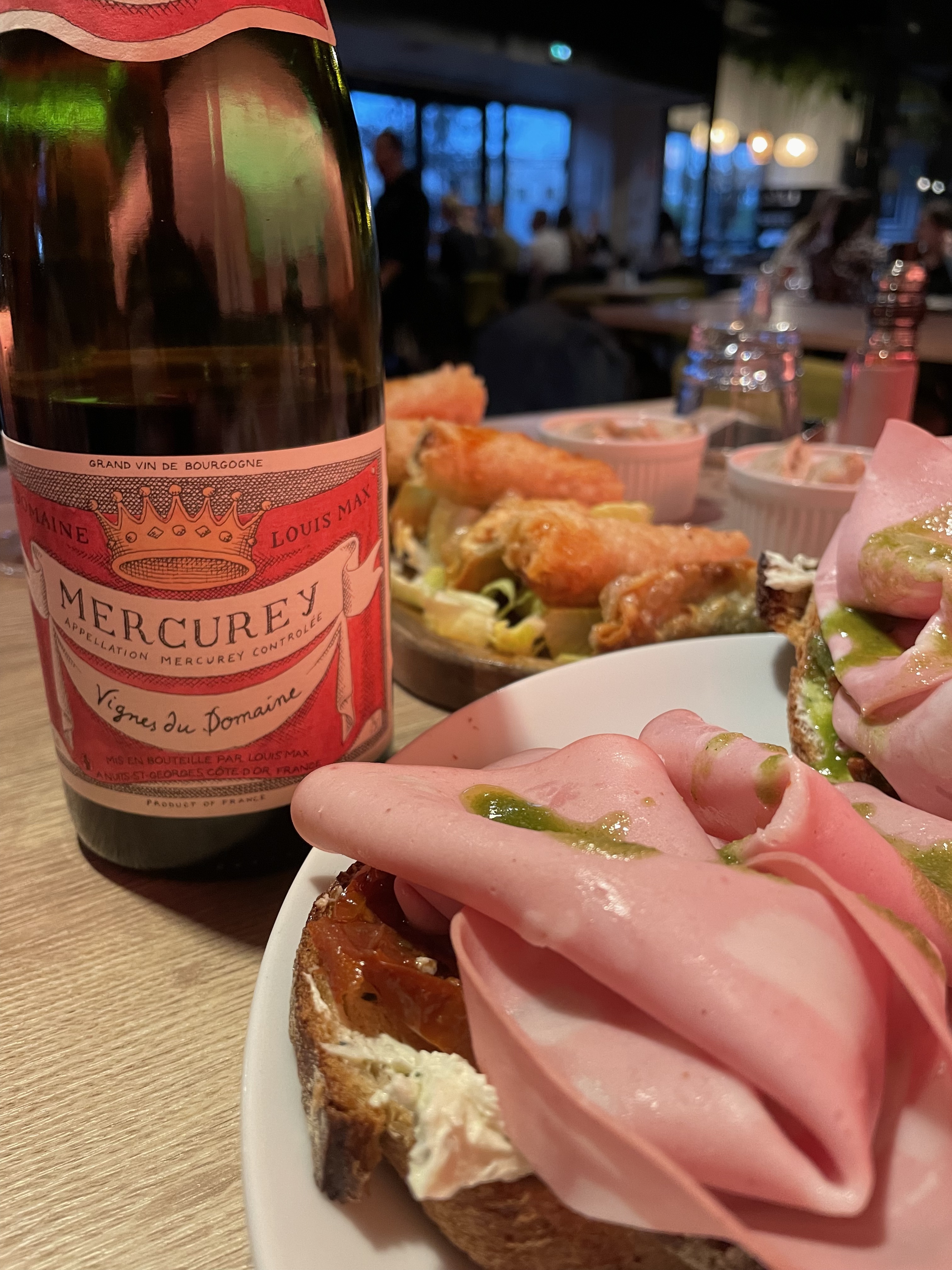 À savoir qu'il y a 2 endroits bien distincts et donc on aurait mieux fait de choisir le côté restaurant... Nous avons pu partager une planche très bien garnie et de qualité. Des retrouvailles entre collègues mais la musique est excessivement forte et en plus ils augmentent le son à partir d'une certaine heure plus possible de communiquer! On s'est rabattues sur la belle terrasse.