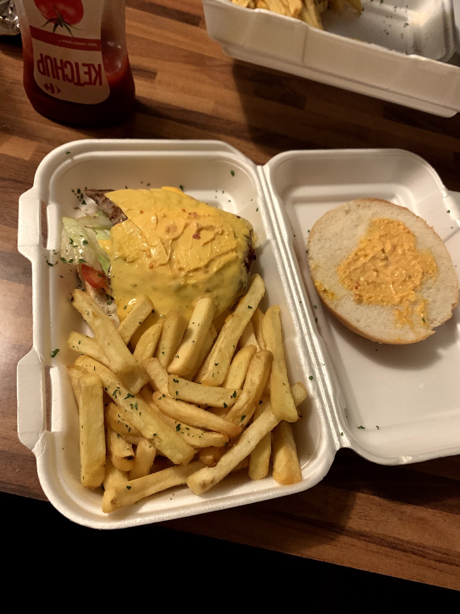 La commande qui a était livré n’étais pas celle que l’ont attendais malheureusement le cheese burger ne ressemblais absolument pas au cheese burger indiqué dans la carte comme le giant bacon il ressemblais plus à un bic mac du macdo que celui sur la carte. Il y avait ni bacon ni salade juste une demi tranche de tomate. Très déçu la carte ne correspond pas à ce qui est servi.