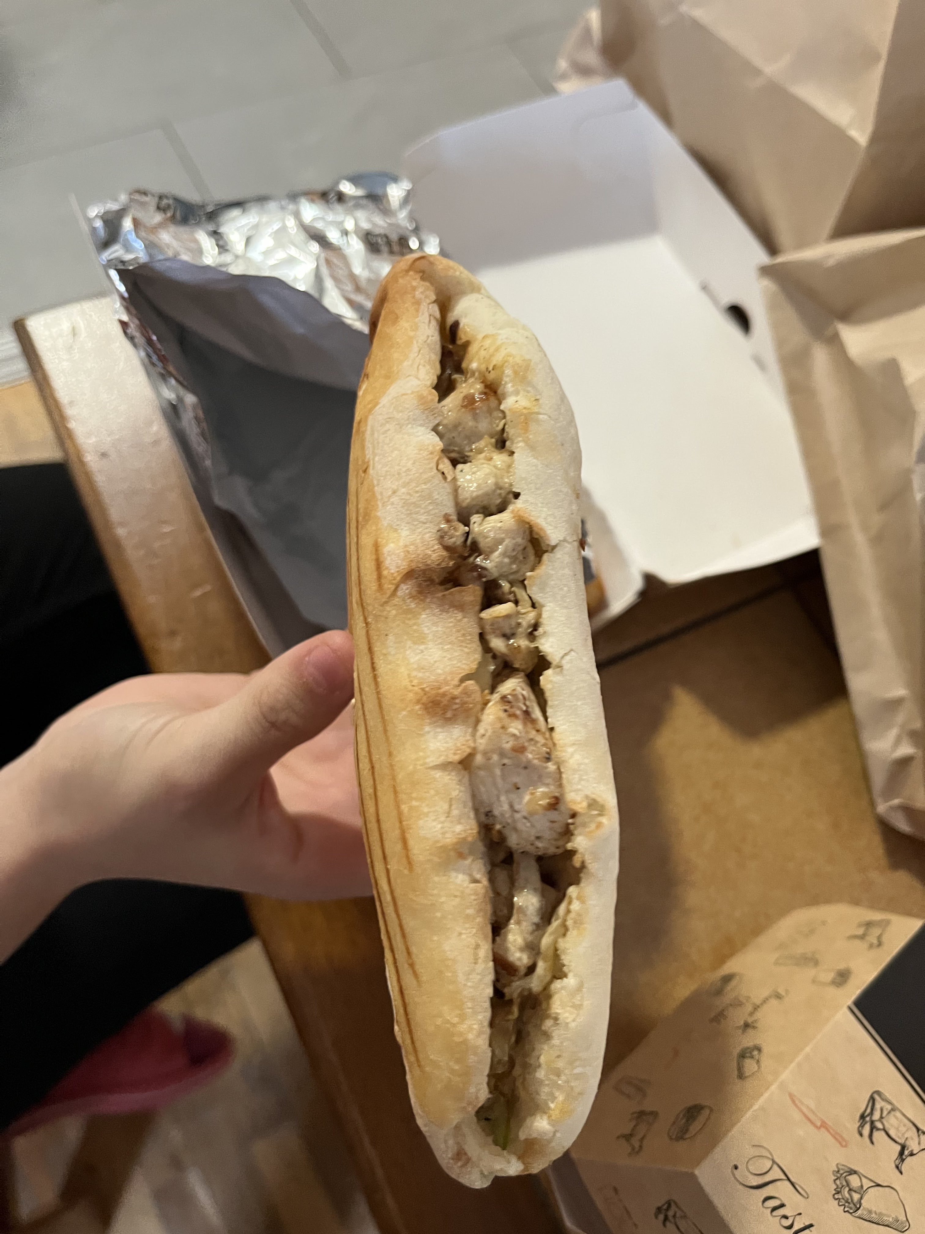 Mais qu’est-ce que c’est que ça ? Je ne sais même pas par où commencer ? Alors, 1. Plusieurs tacos commandés mais aucune info notée dessus… on doit deviner parce que celui qui a emballé avait certainement la flemme de mettre des initiales. 2. Savez-vous ce qu’est tandoori ? Ou au moins avez-vous cette épice parce que visiblement pour vous, c’est blanc avec qqch de crémeux. 3. On en parle du goût ? Non seulement fade mais ingrédients noyés dans la sauce crème qui prend le dessus sur tout le reste. 4. Les précédents commentaires parlait de l’amabilité inexistante de la vendeuse. Je confirme. Désolée si prendre une commande la dérange et ne se gêne pas pour le montrer. 2eme chance accordée à ce snack mais vraiment la dernière. Obligée d’écrire ce roman pour dissuader des personnes qui ont un palais. Augmentez les prix si ça vous permet de faire de la qualité.