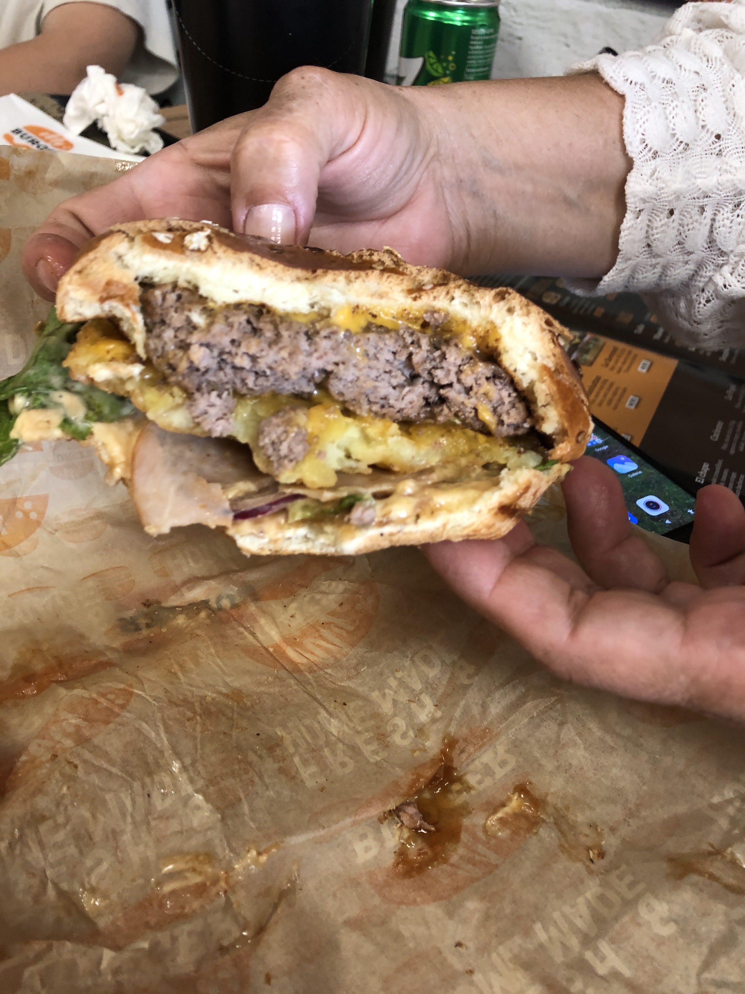 Steak sec, on dirait du charal. Frites pas cuites, je commande le milkshake mais arrivé à ma commande, plus de milkshake on me donne quelque chose de pas du tout équivalent et surtout pas de remboursement de la différence. Trompé de commande plusieurs fois. Et l’accueil parlait très mal à son personnel de cuisine devant tout le monde. Nous n’avons pas besoin d’entendre tout ça. Je ne recommande pas du tout.