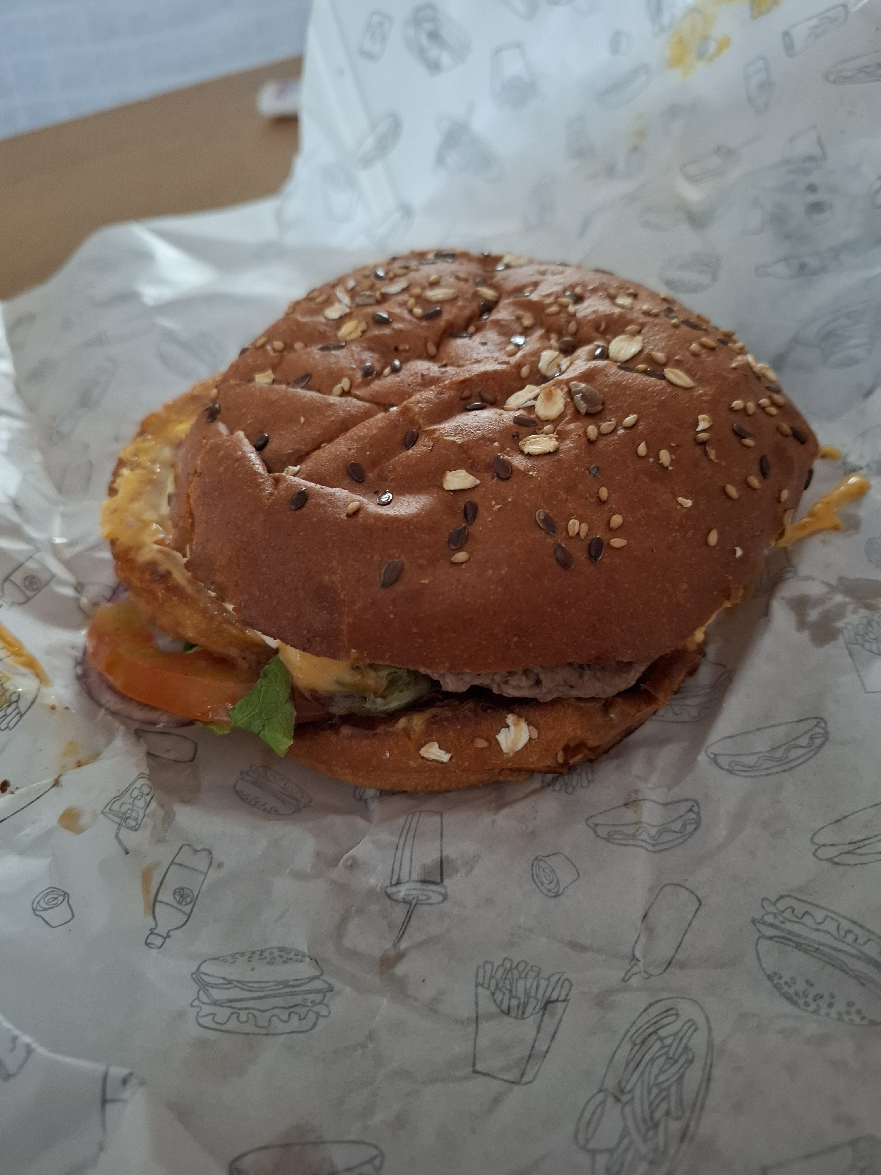Très bon hamburger, servit bien chaud, bien consistant et rapidement servit.