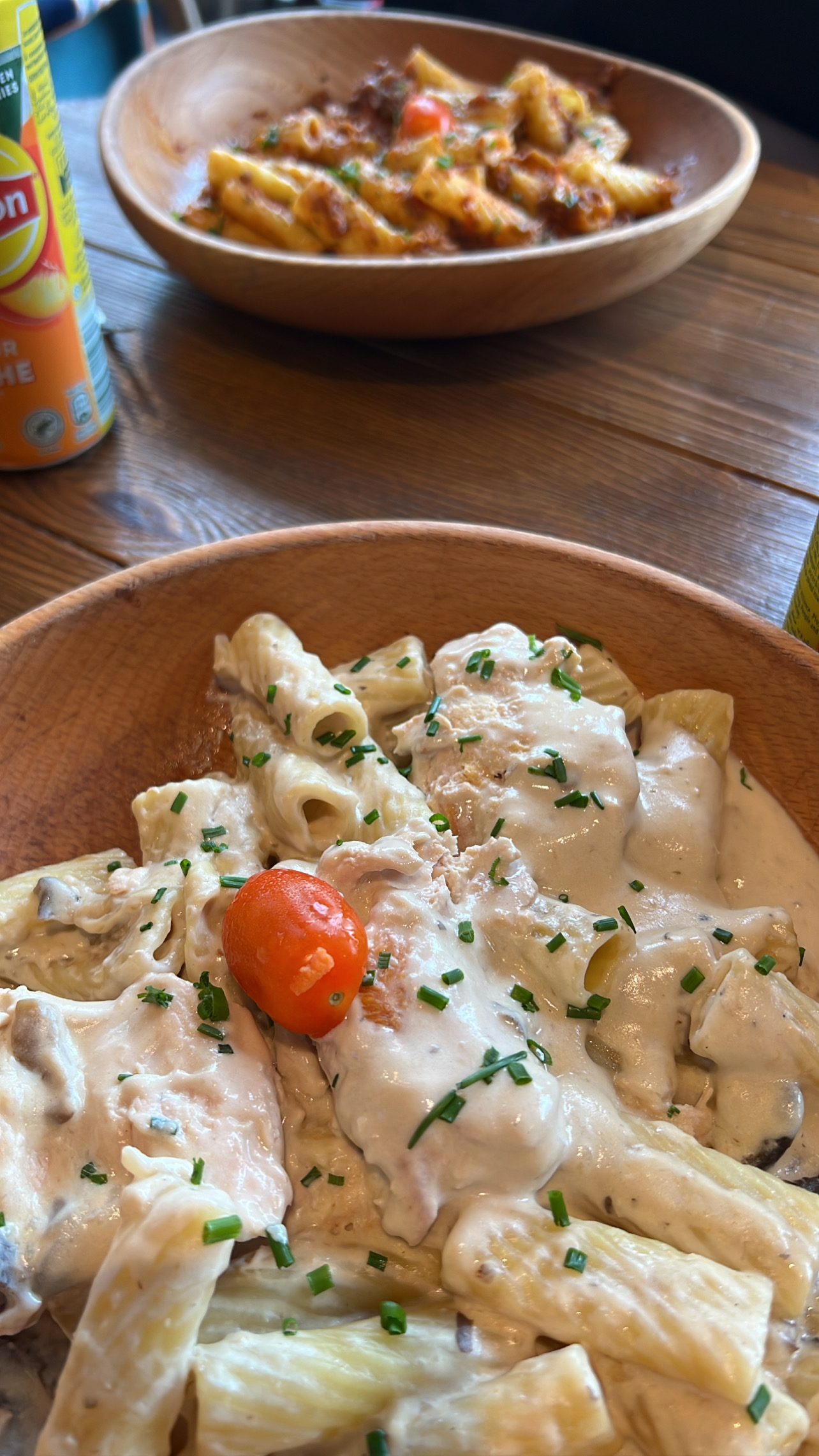 Salade chèvre chaud + pâtes forestières.. 🤤 Autant les plats sont bien présentés, autant c’est délicieux ! Les employées qui étaient là ce jour sont très accueillantes et aimables 😊