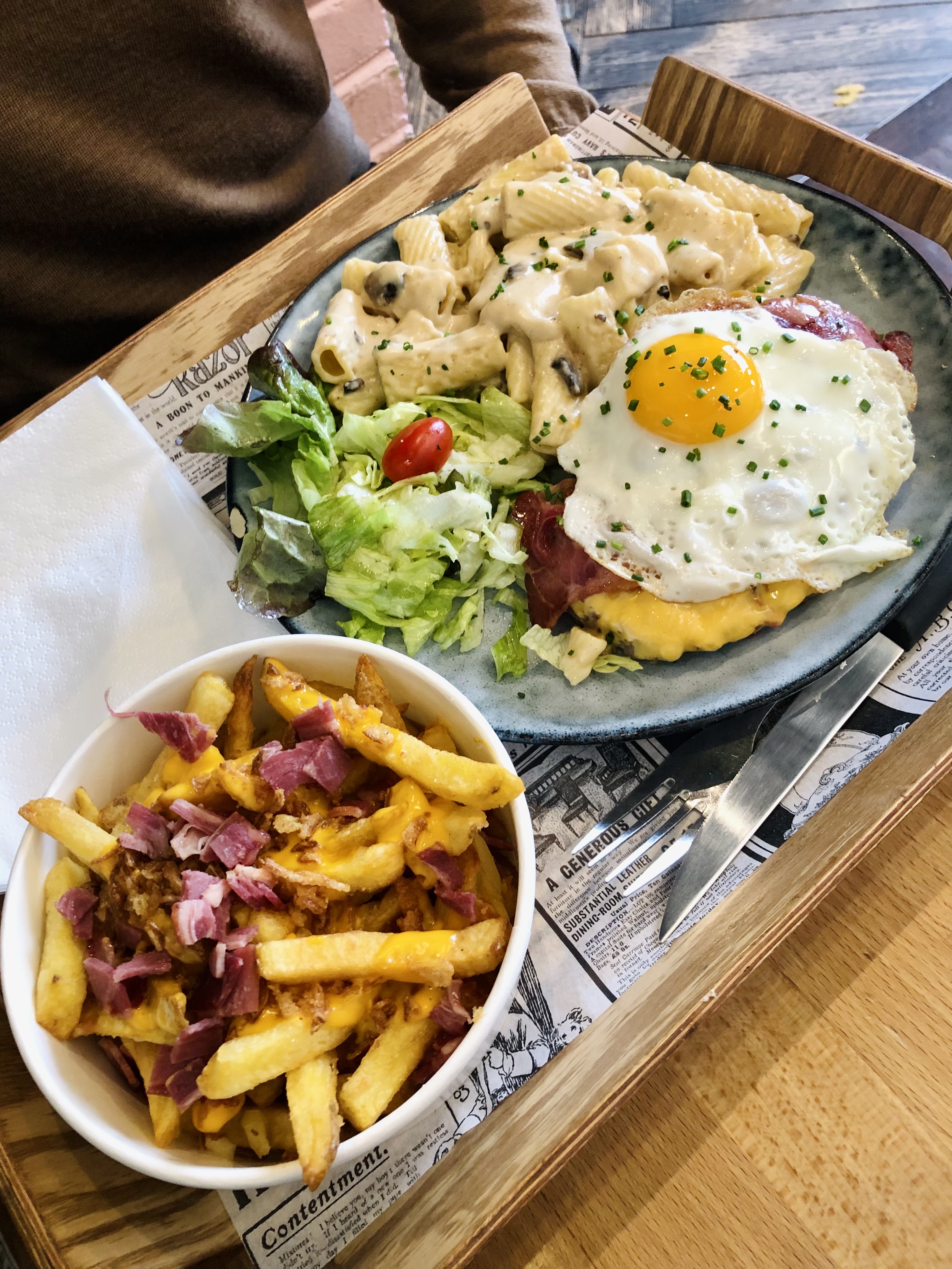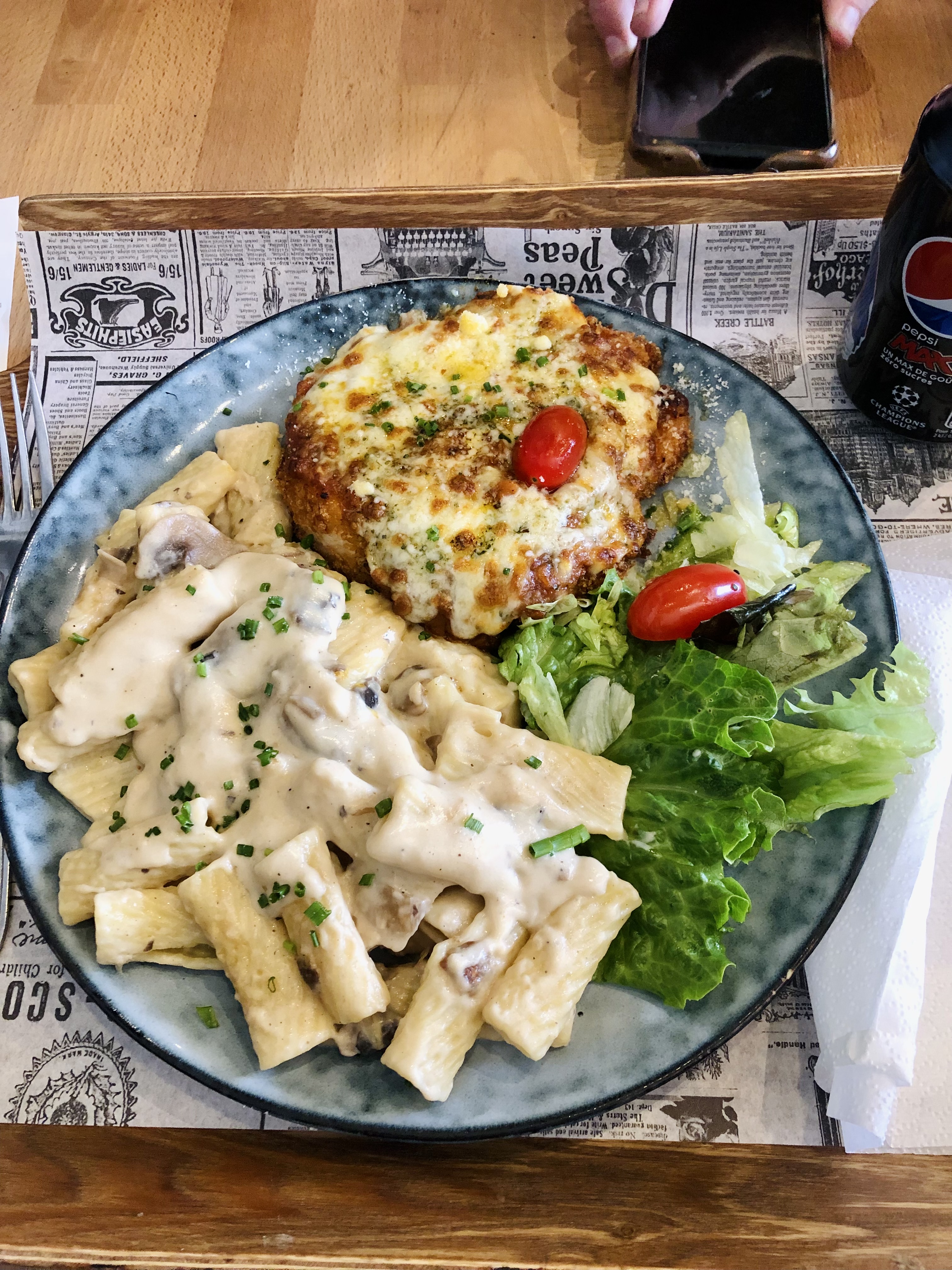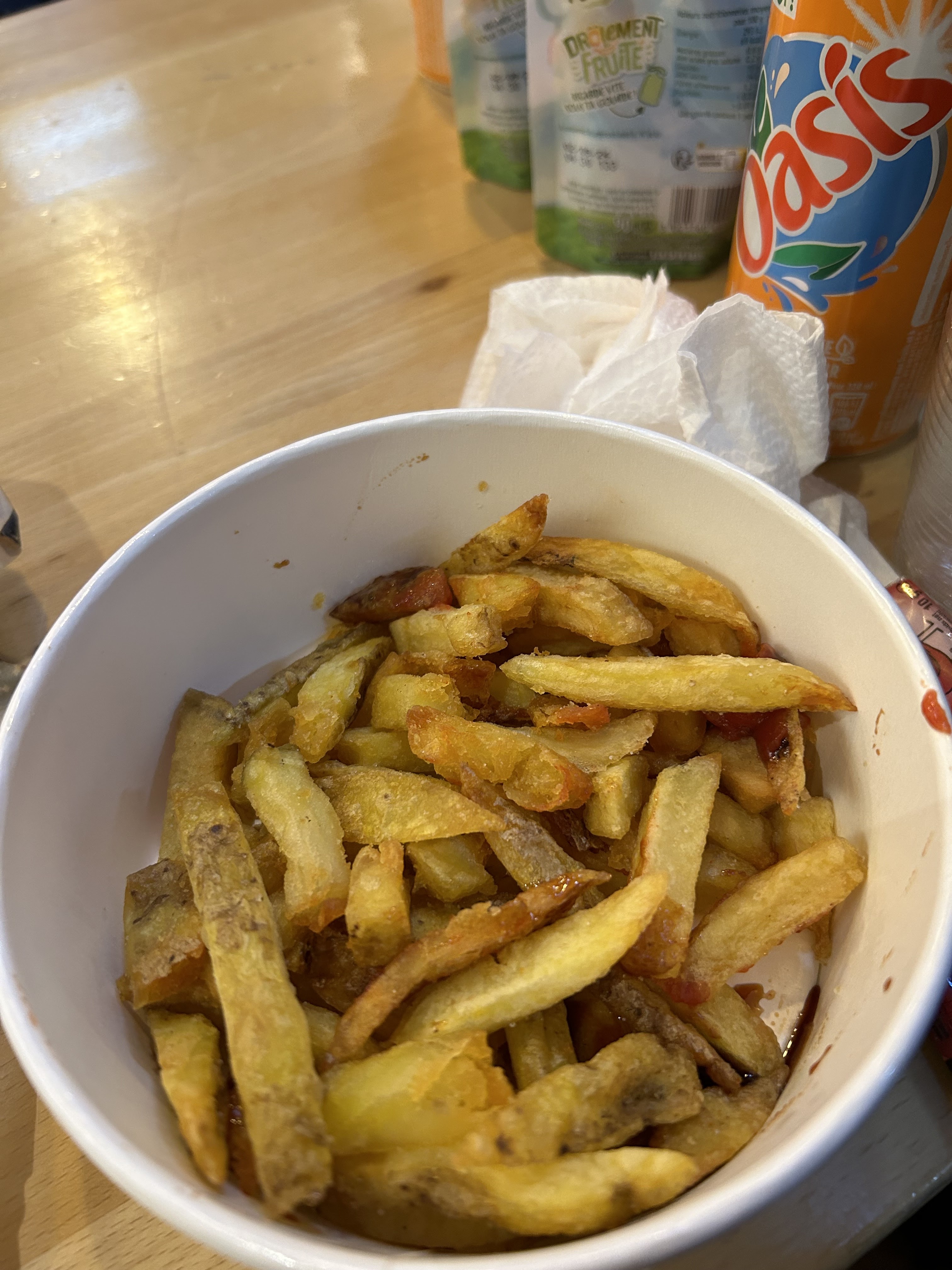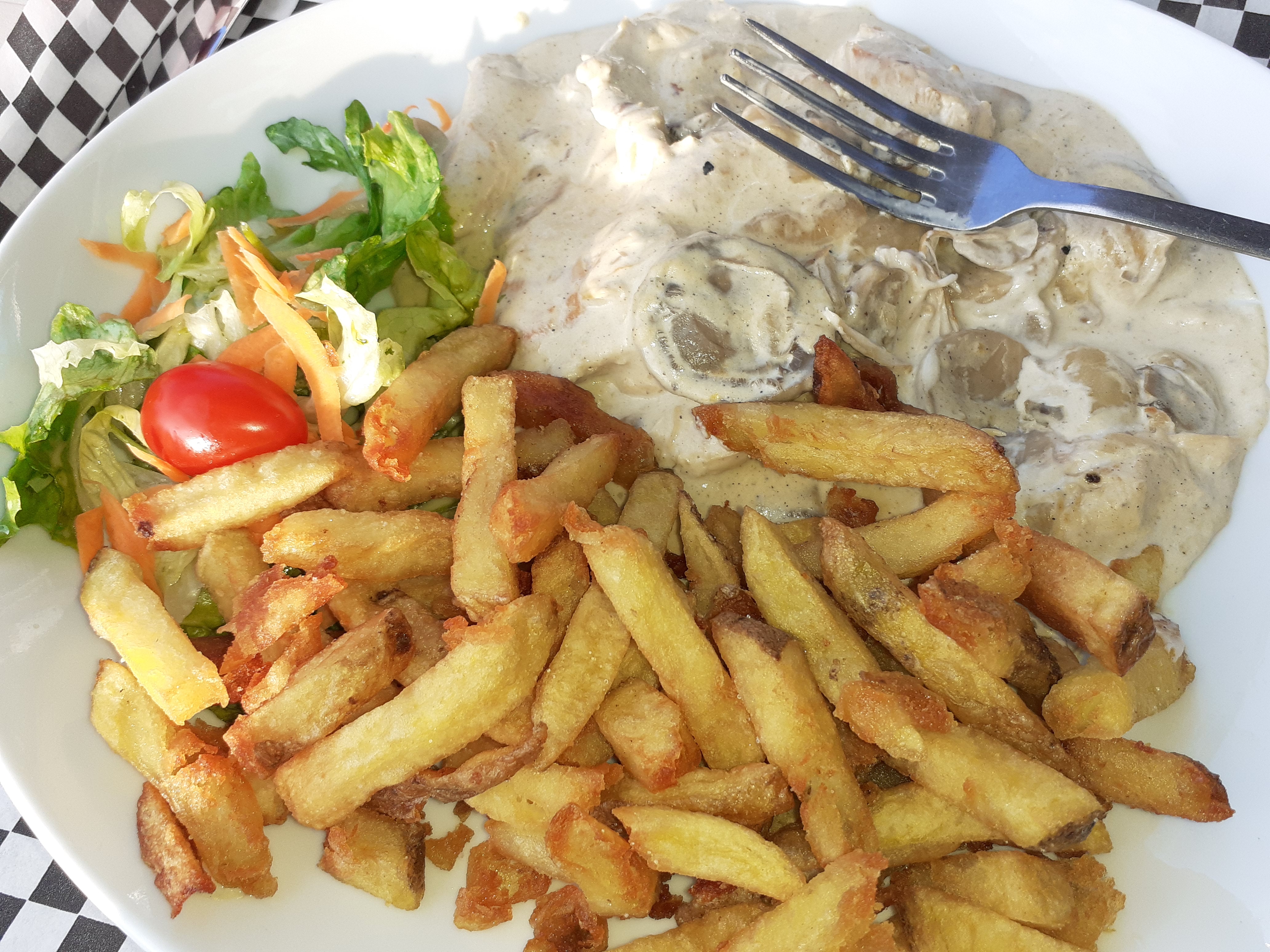 Très gras et pas du tout sain pour la santé Les pâtes sont beaucoup beaucoup trop cuites… Les frites sont décomposées en plusieurs morceaux et pleines d’huile (au défi de tomber sur une frite entière)… Les sauces forestières sont écœurantes du fait d’un excès de crème fraîche… Les prix sont excessifs pour la qualité…